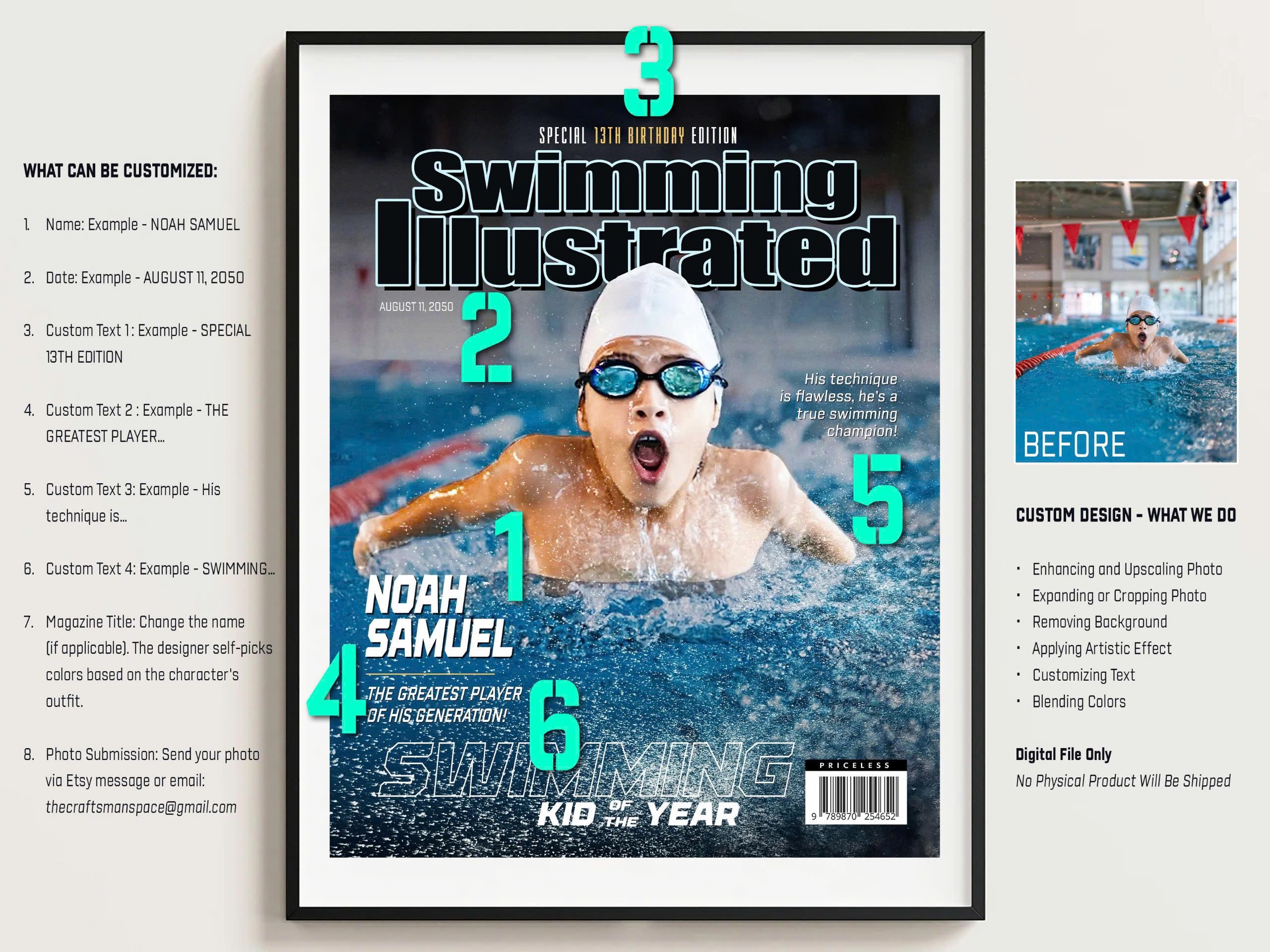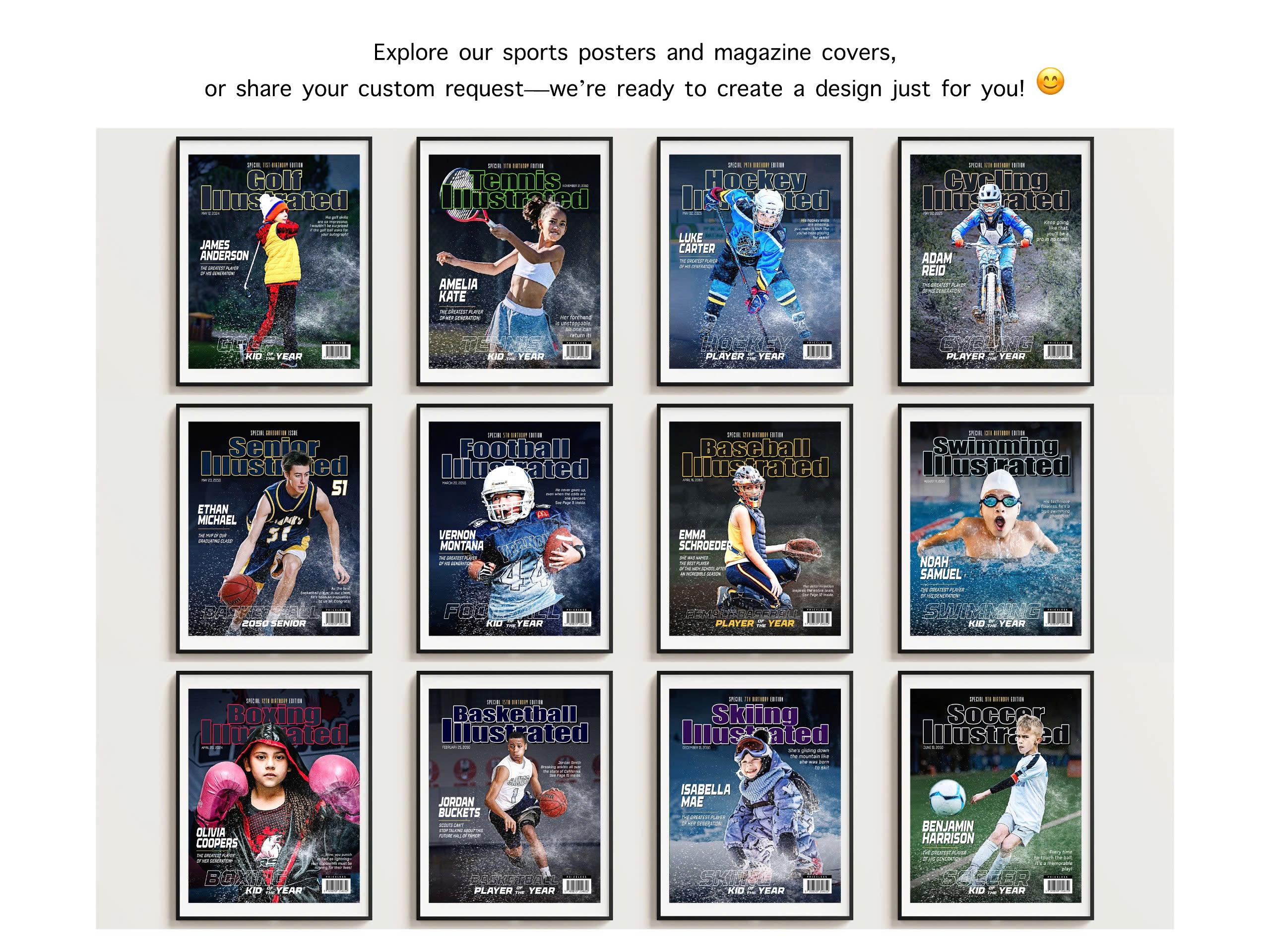 Custom Tennis Illustrated Magazine Cover, Tennis Poster, Personalized Gifts, Birthday Gift for Tennis Player, Gifts for him, for her, for Kids, Gift for Boss, Husband, Co-worker, Brithday Gift for him, Ultimate Athletic Gift, Kids Sports Magazine, Junior Sports Fans, Personalized Gifts, Christmas Gifts, Valentines Gifts