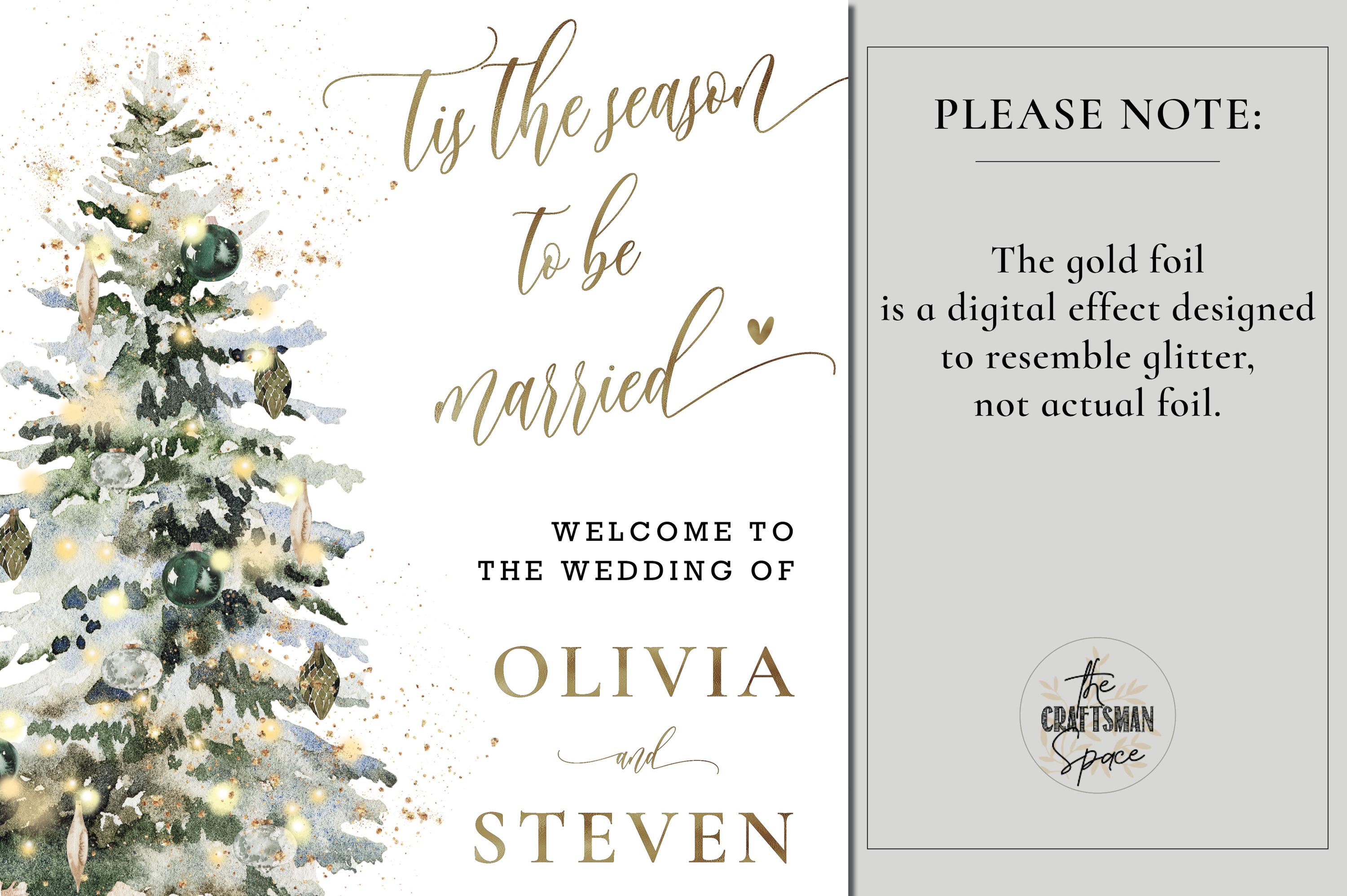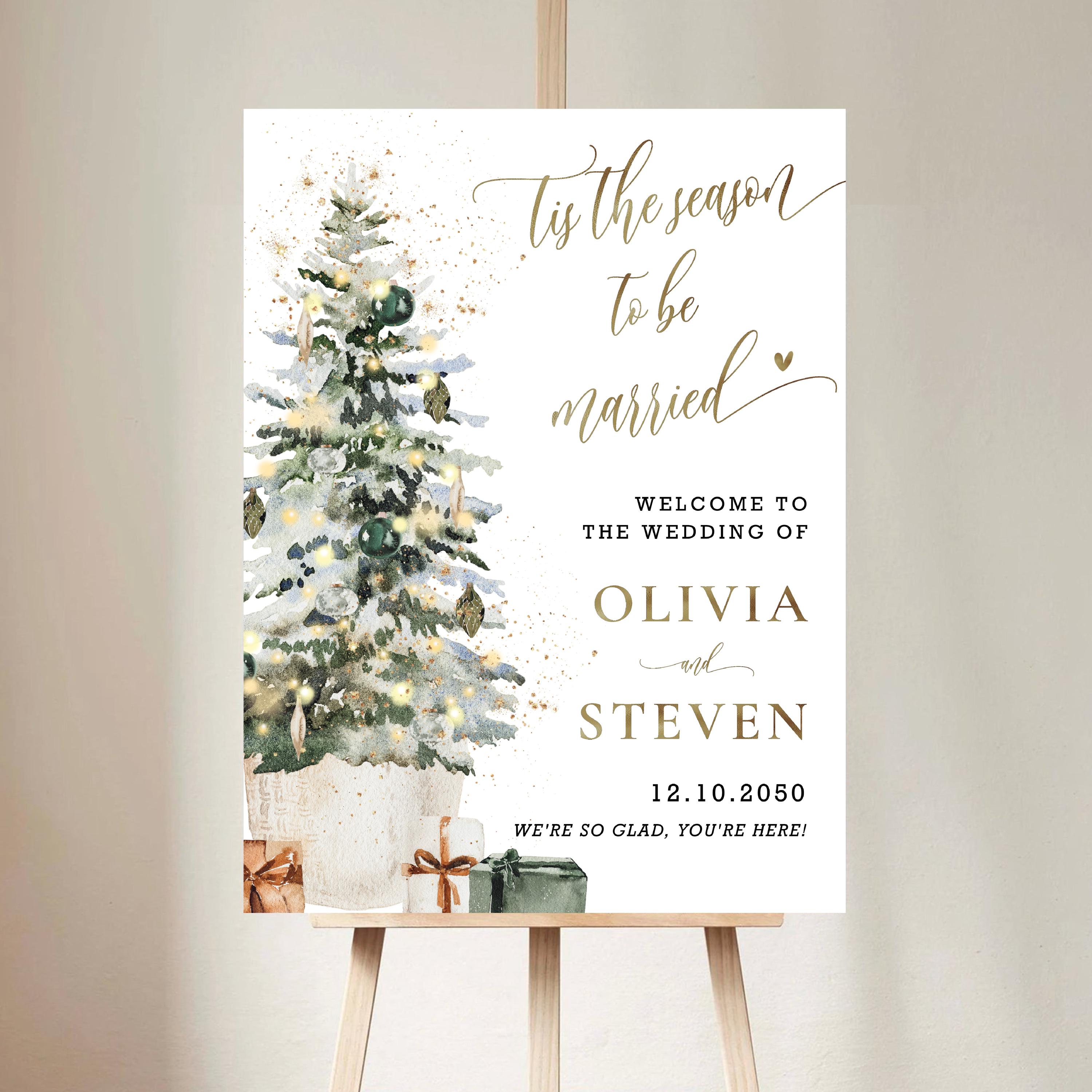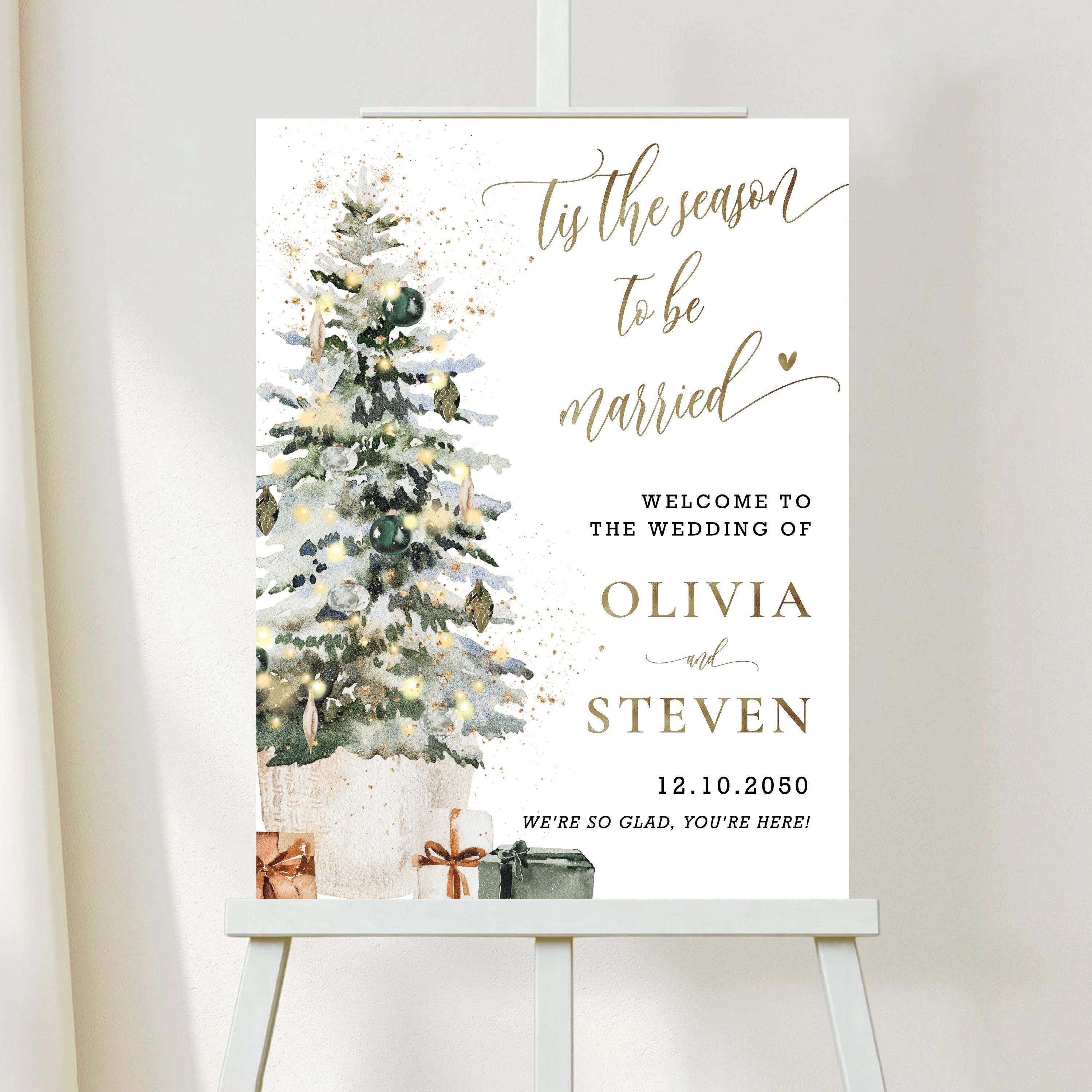 Christmas Wedding Welcome Sign brings a warm and romantic touch to your special day. Featuring elegant handwritten fonts, highlighted with a festive Christmas tree and charming gift boxes, it creates a joyful holiday atmosphere. This sign can be personalized with your wedding details and is available as a printed product or a digital file, making it perfect for any celebration.
