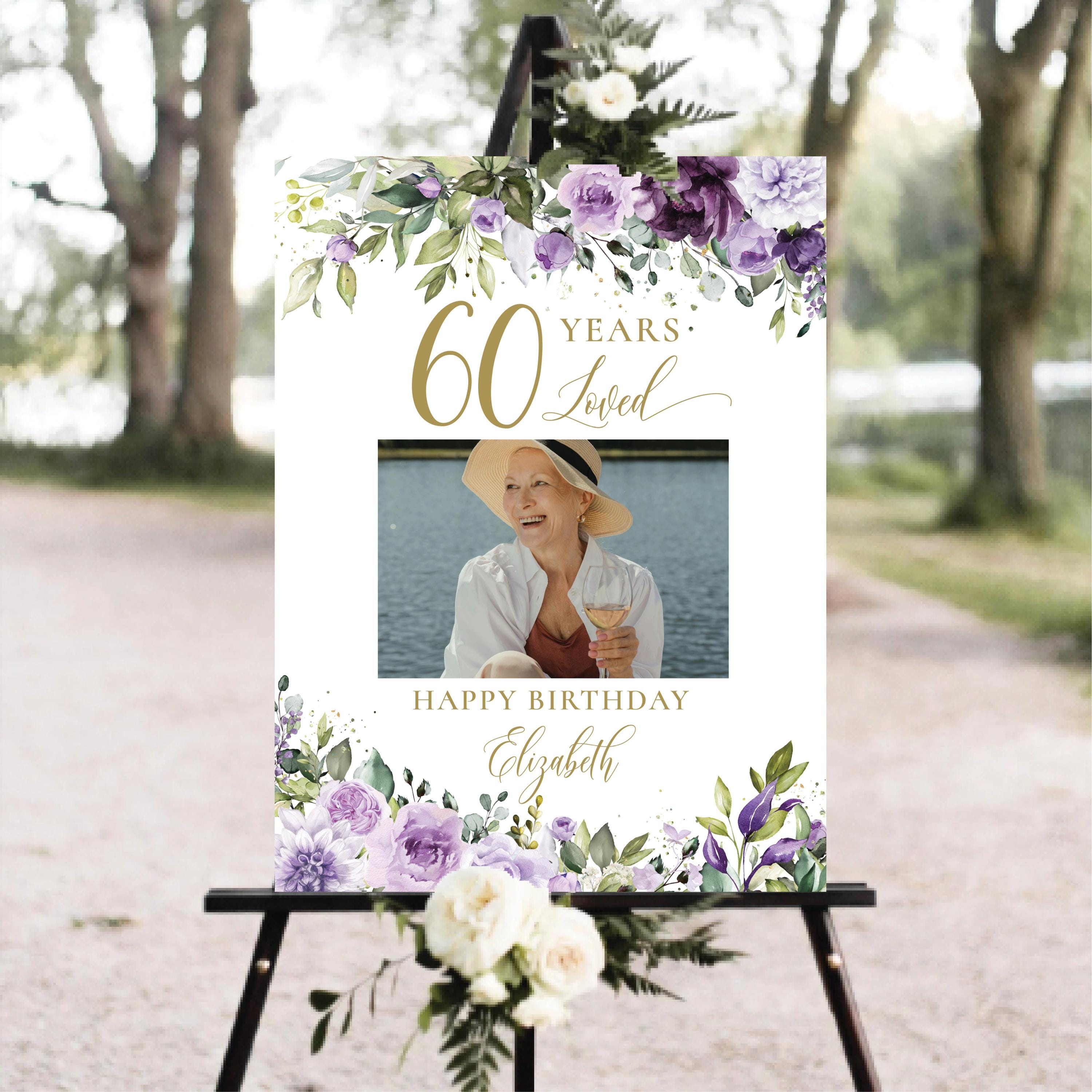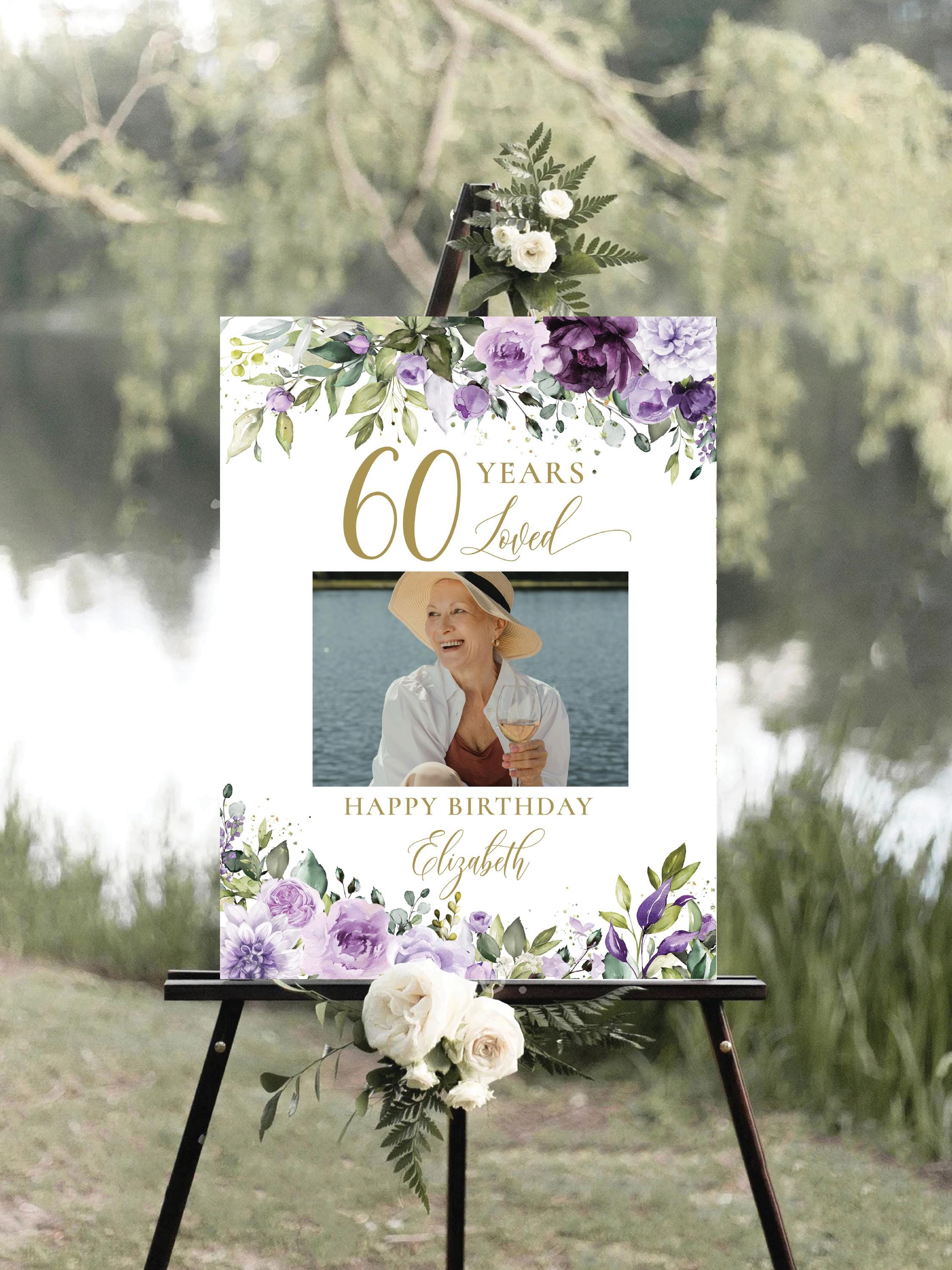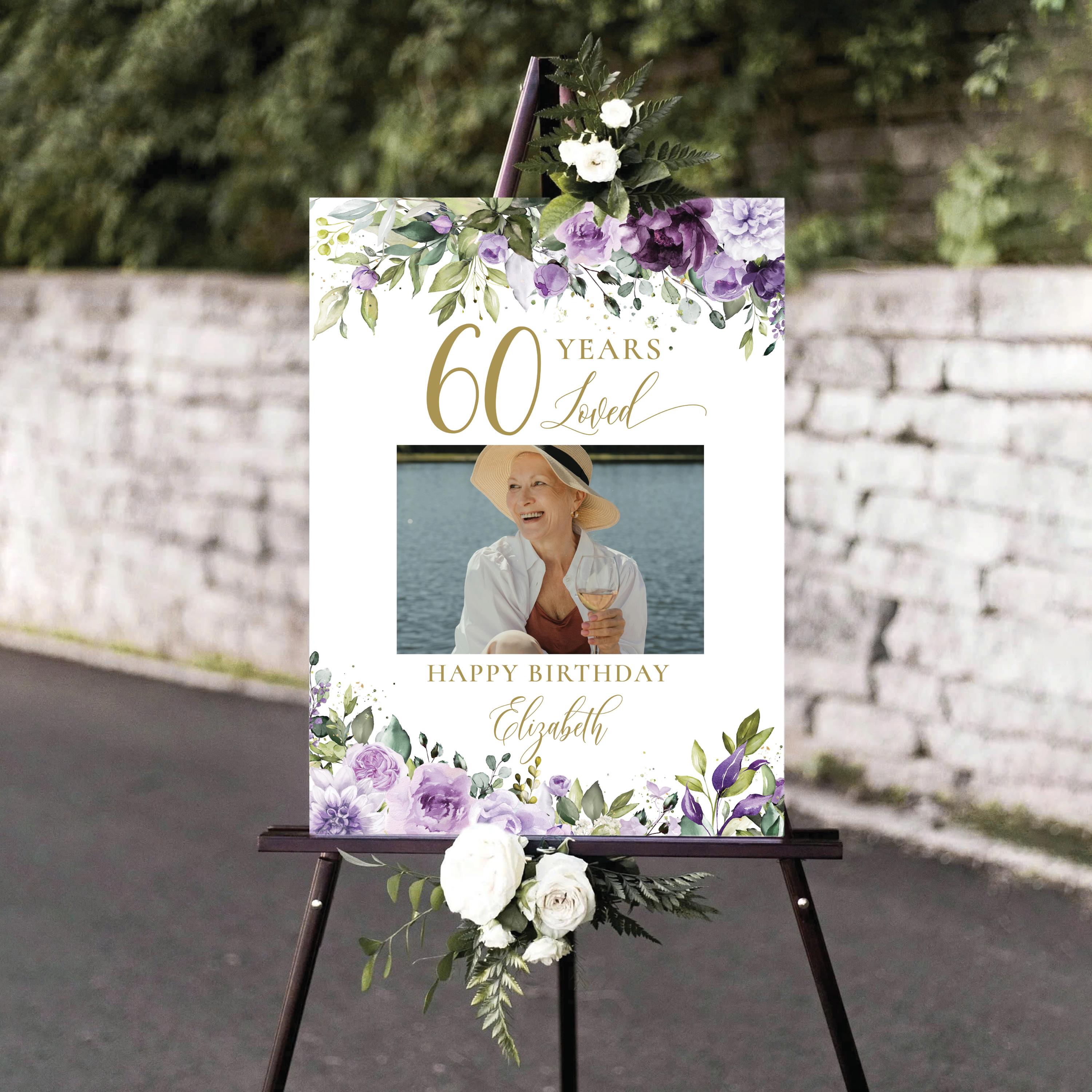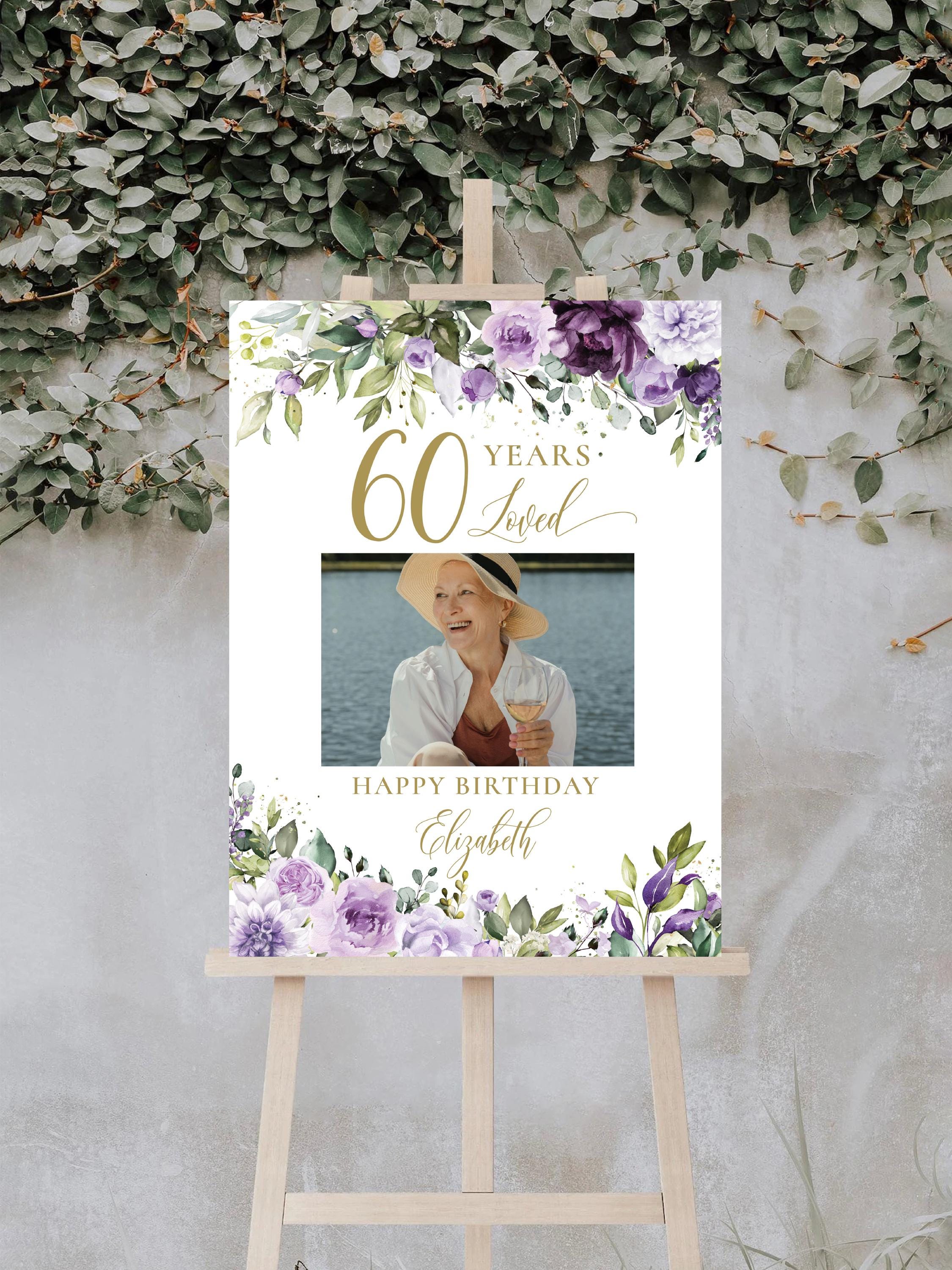 Celebrate a special milestone with our Purple Floral 60th Birthday Party Welcome Sign, available as a printed or digital file. Featuring elegant violet flowers, fresh greenery, and a graceful handwritten style font, this sign can be personalized for any age, photo. A perfect touch to make your celebration even more charming.