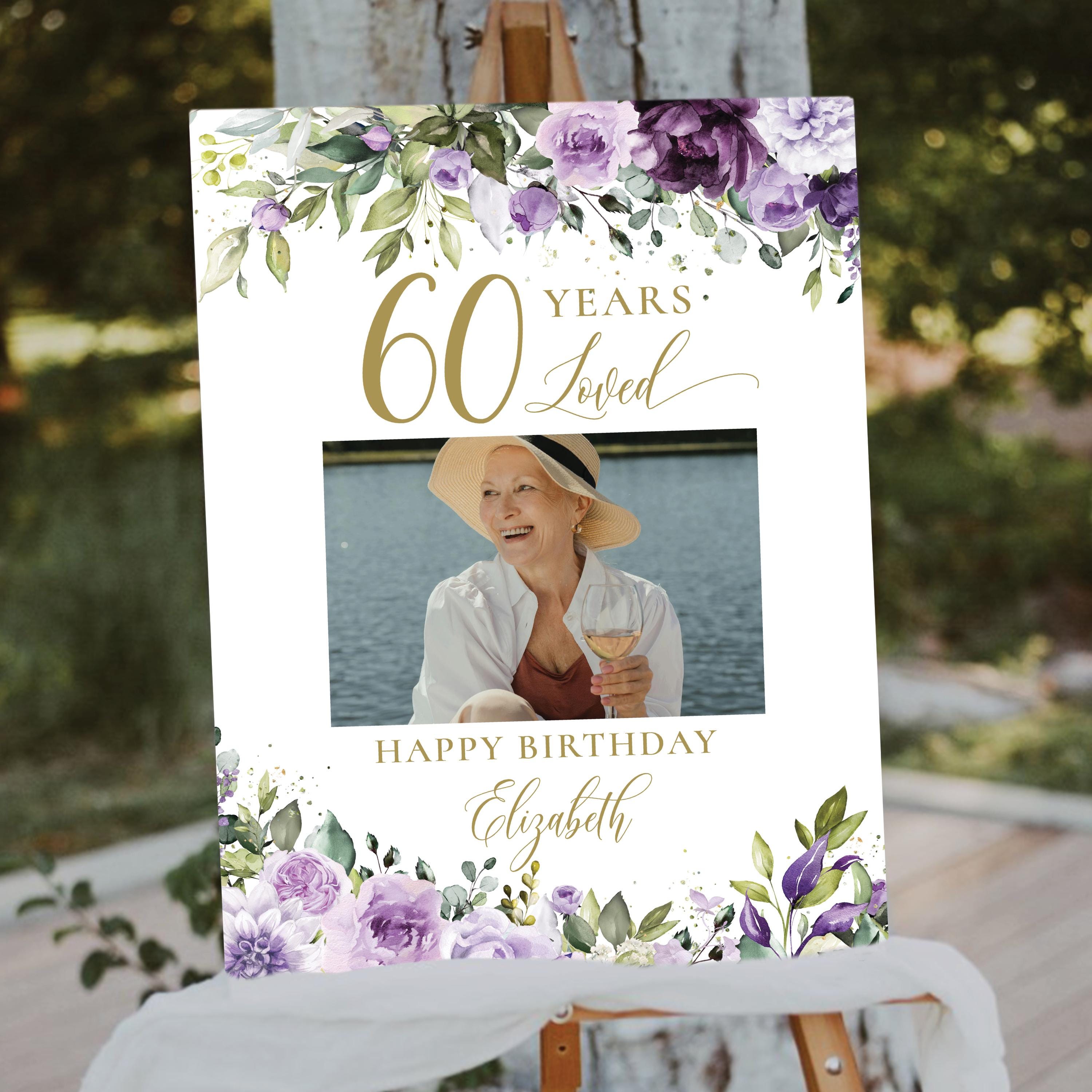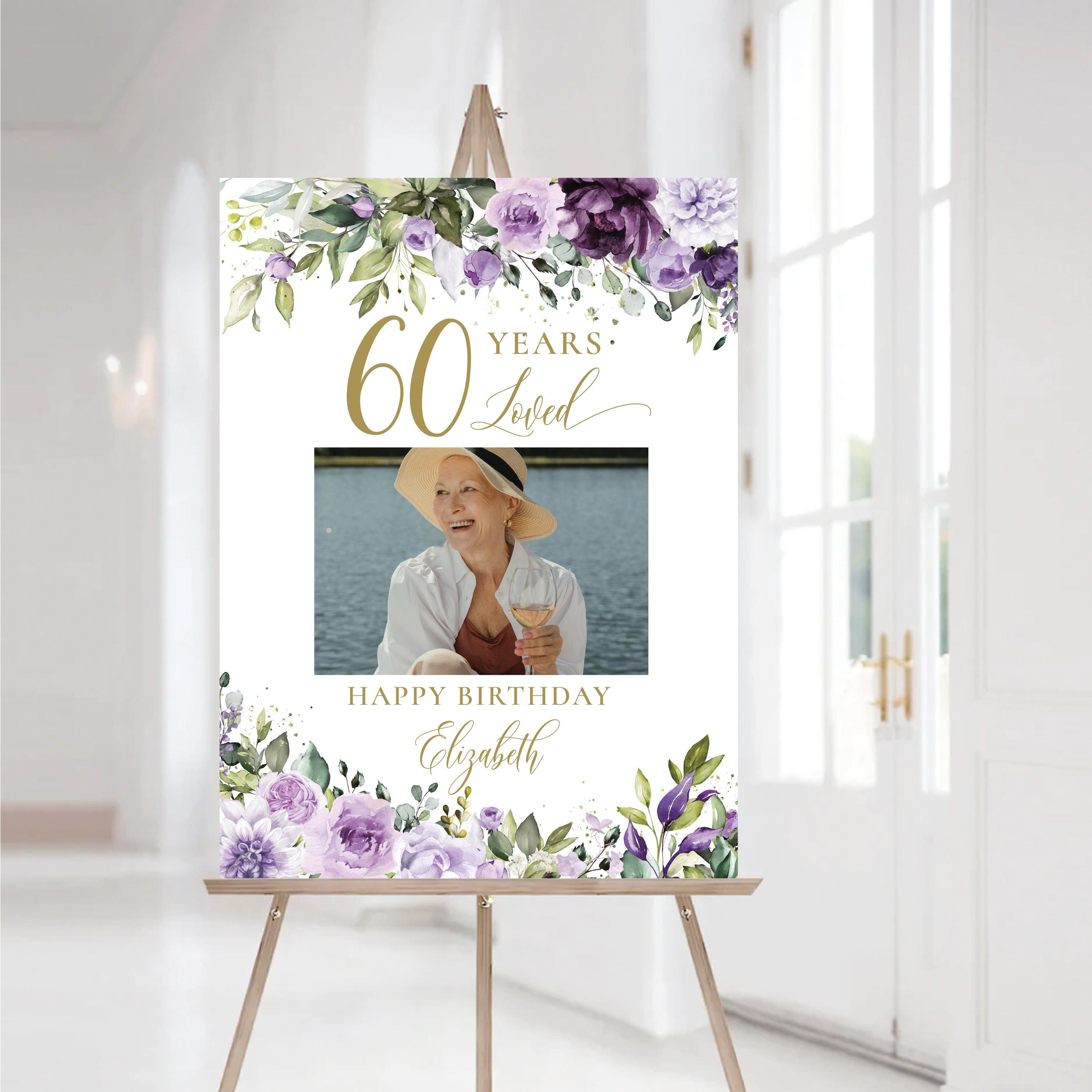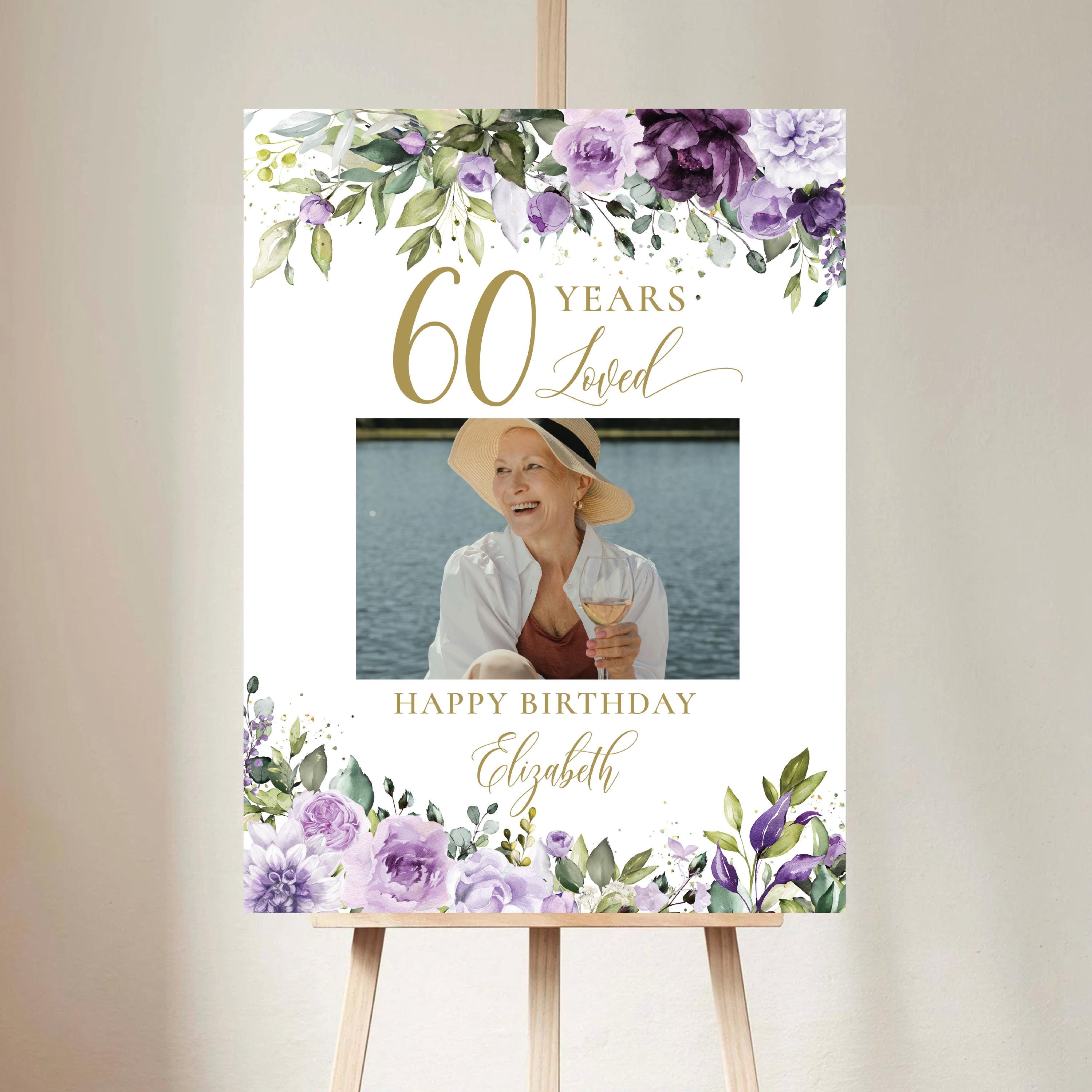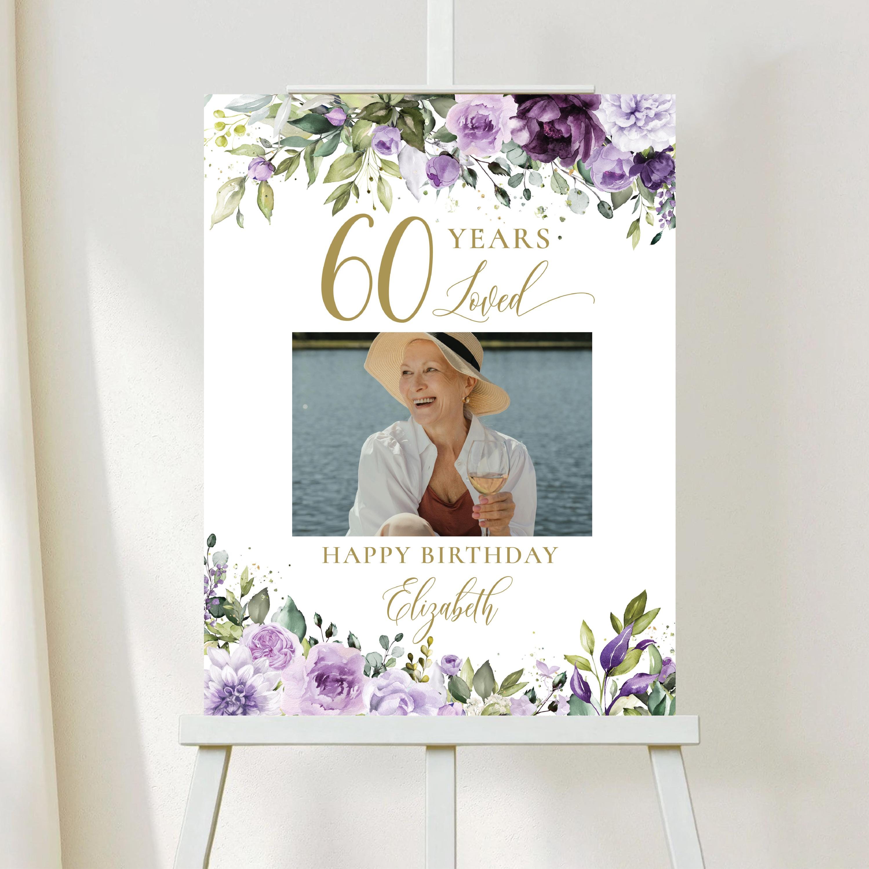 Celebrate a special milestone with our Purple Floral 60th Birthday Party Welcome Sign, available as a printed or digital file. Featuring elegant violet flowers, fresh greenery, and a graceful handwritten style font, this sign can be personalized for any age, photo. A perfect touch to make your celebration even more charming.