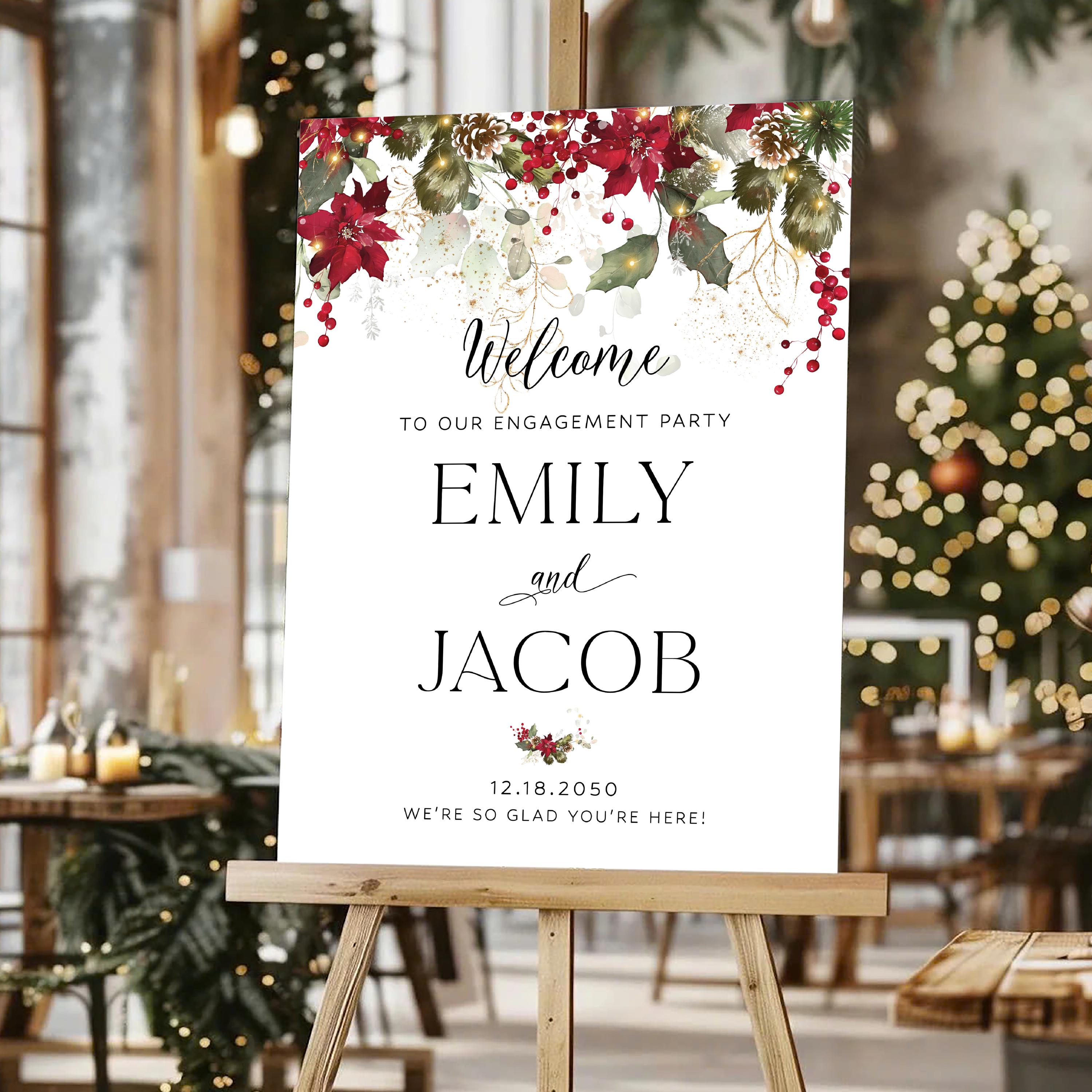 Bring festive cheer and romantic charm to your engagement celebration with this elegant Christmas-themed welcome sign! 🎄✨