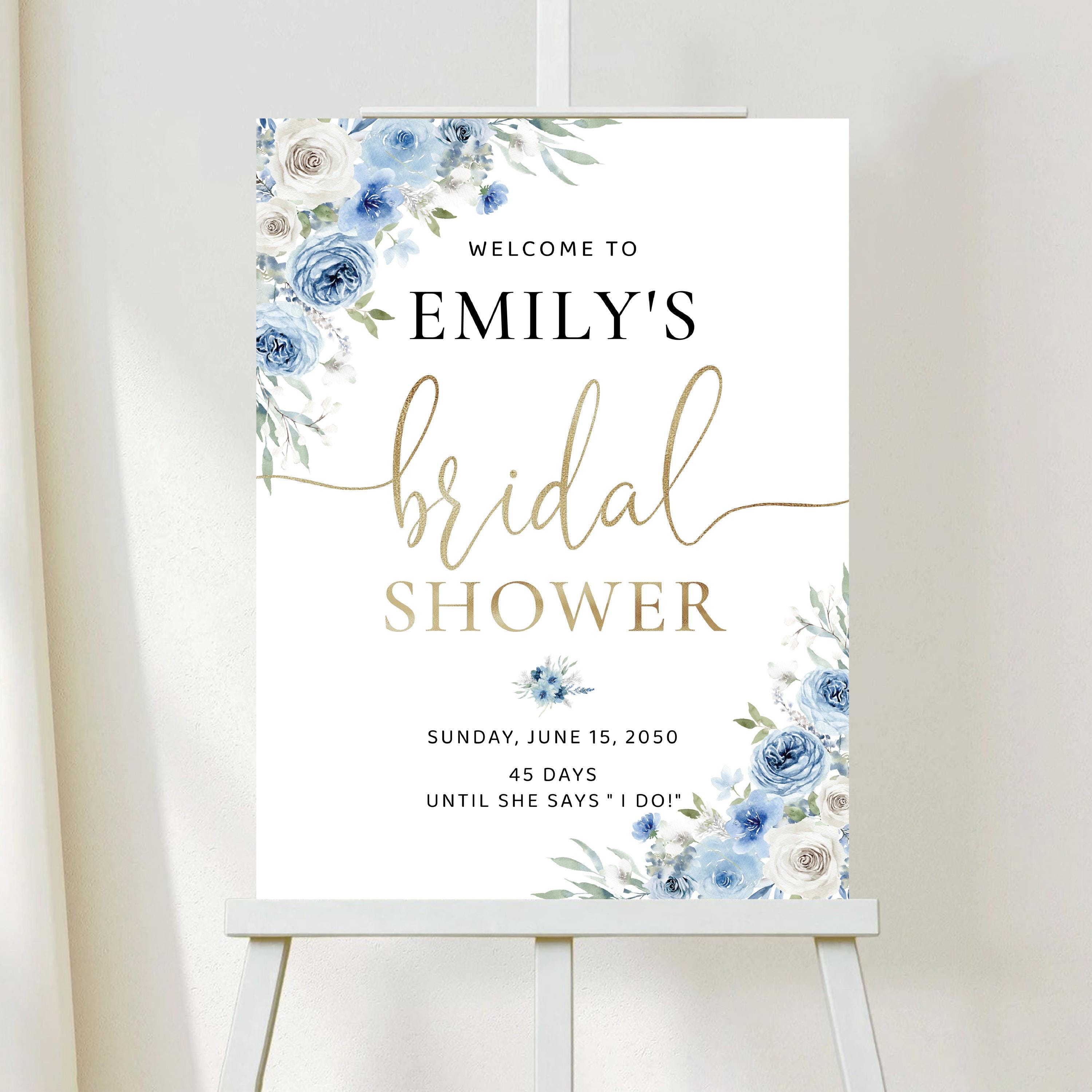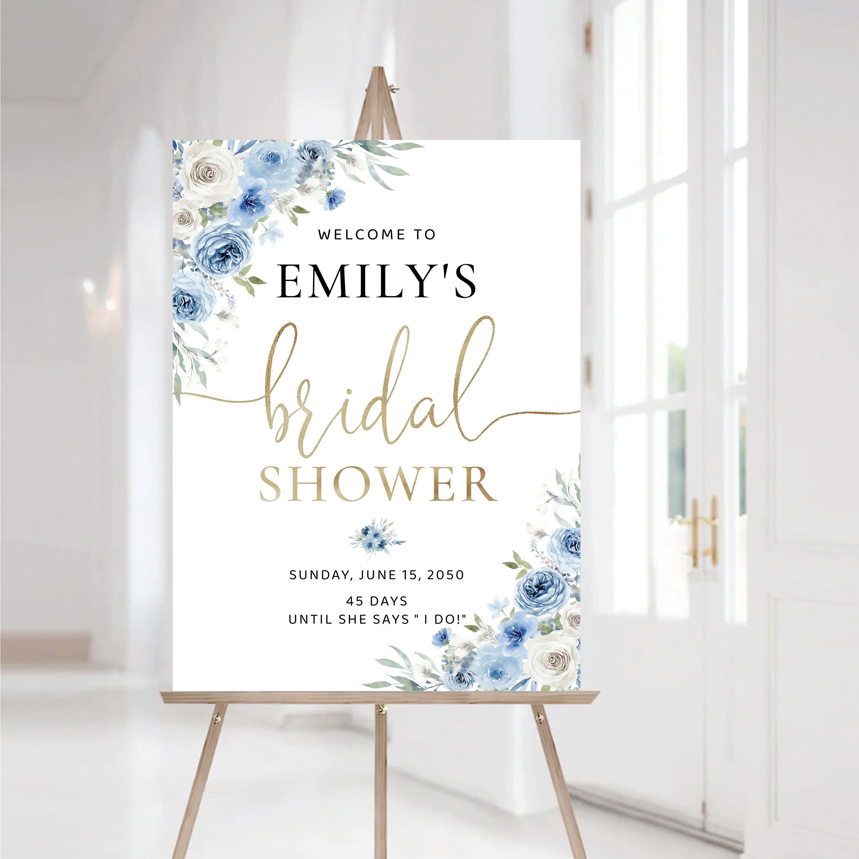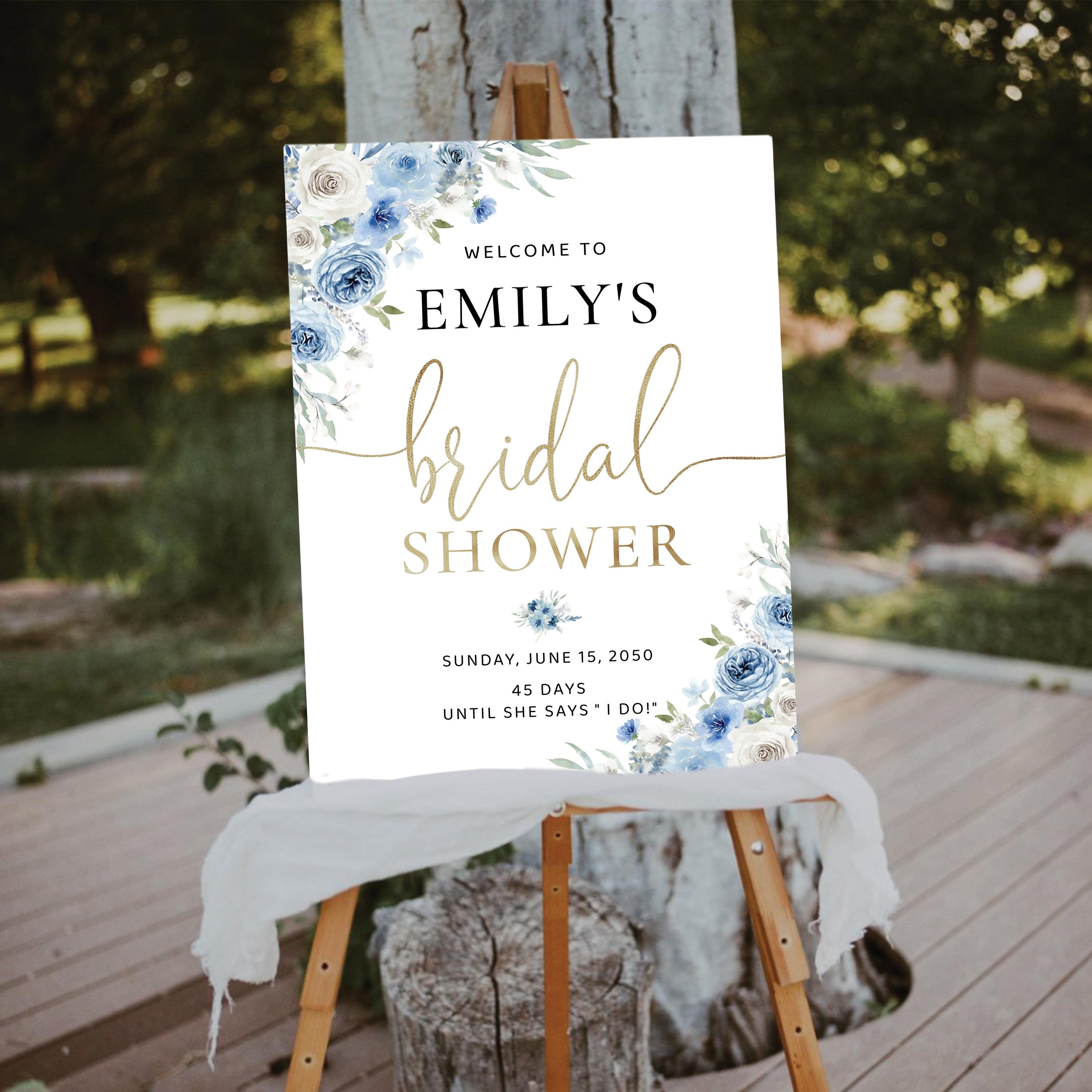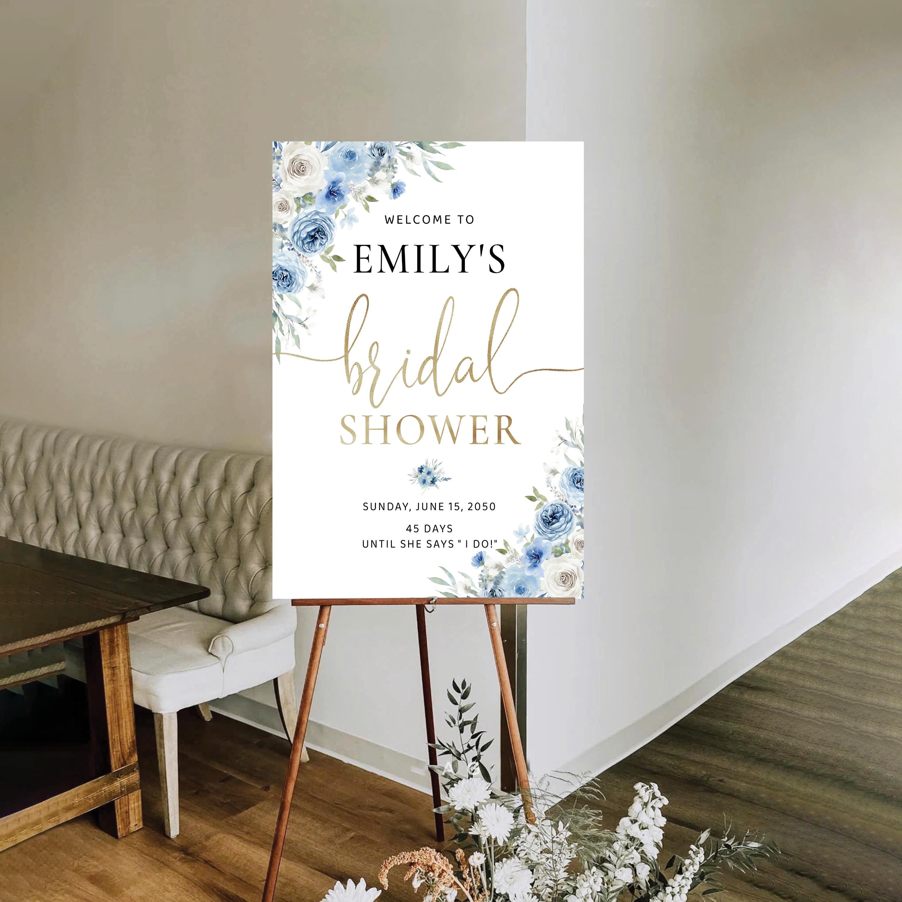 The Blue Floral Bridal Shower Welcome Sign features a soft boho style with a beautiful blend of dusty blue and ivory flowers, accented with elegant faux gold details. The handwritten font adds a warm and romantic touch, making this welcome sign a stunning focal point for your bridal shower celebration. Available as a professionally printed sign or a high quality digital file, it can be easily customized to perfectly match your event theme and décor.
