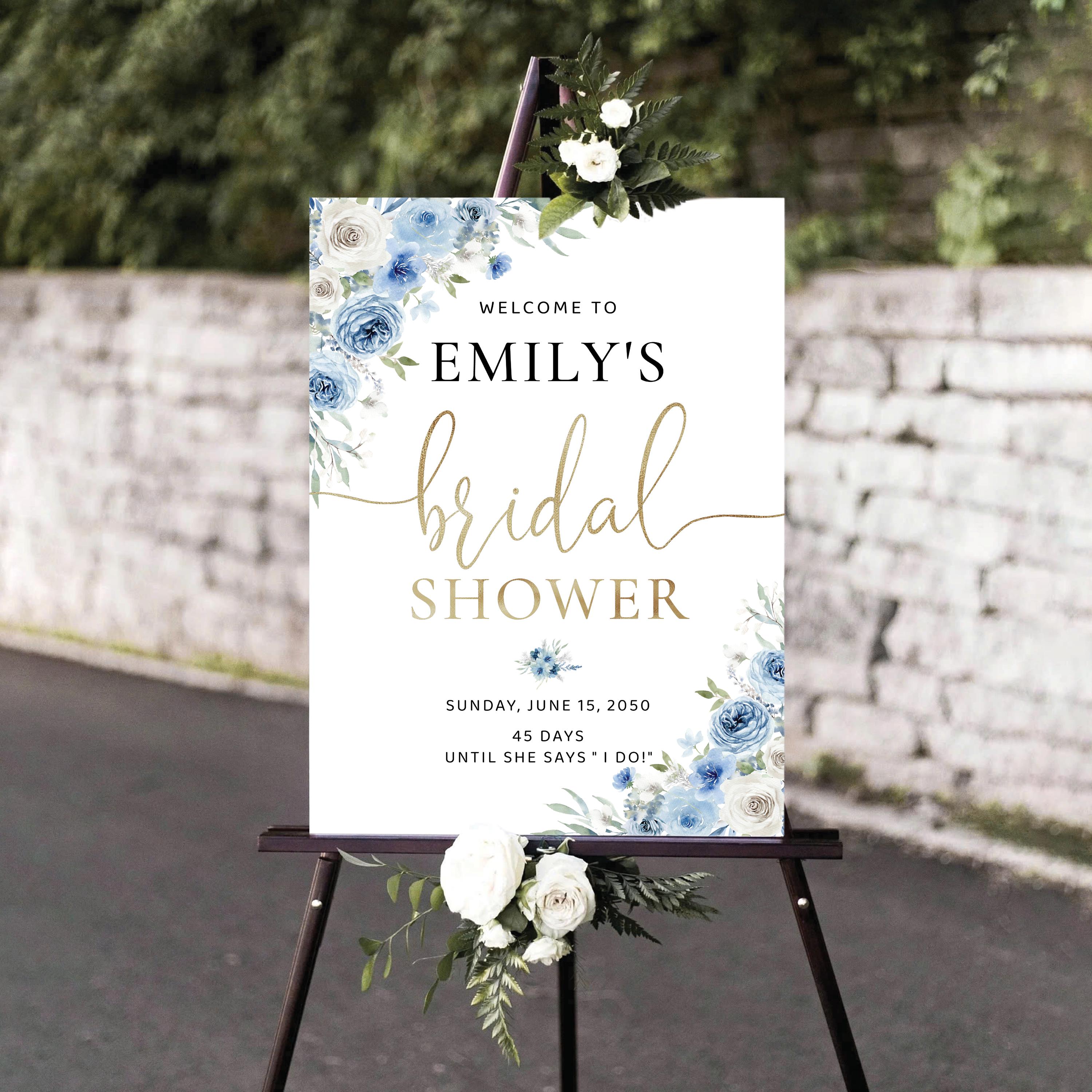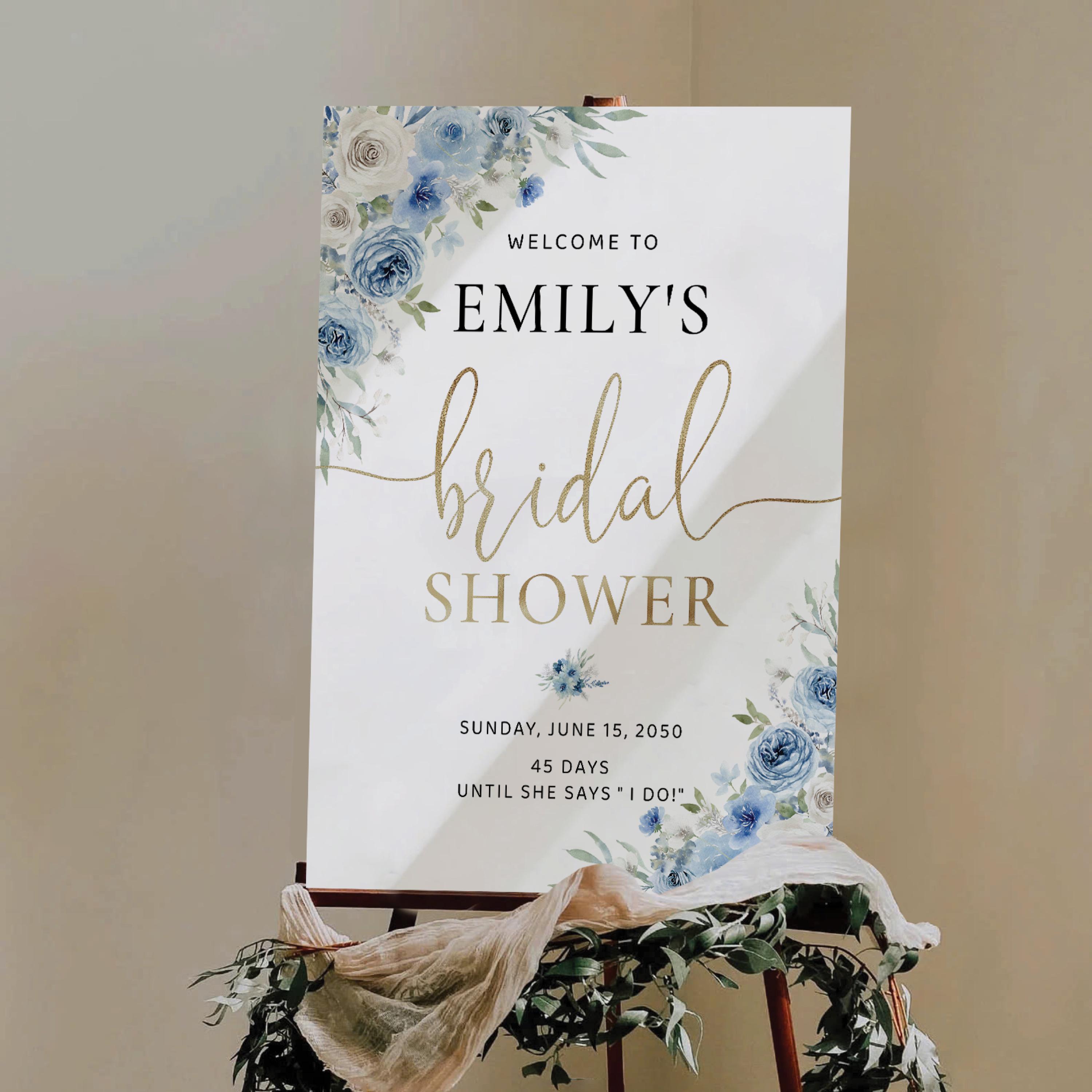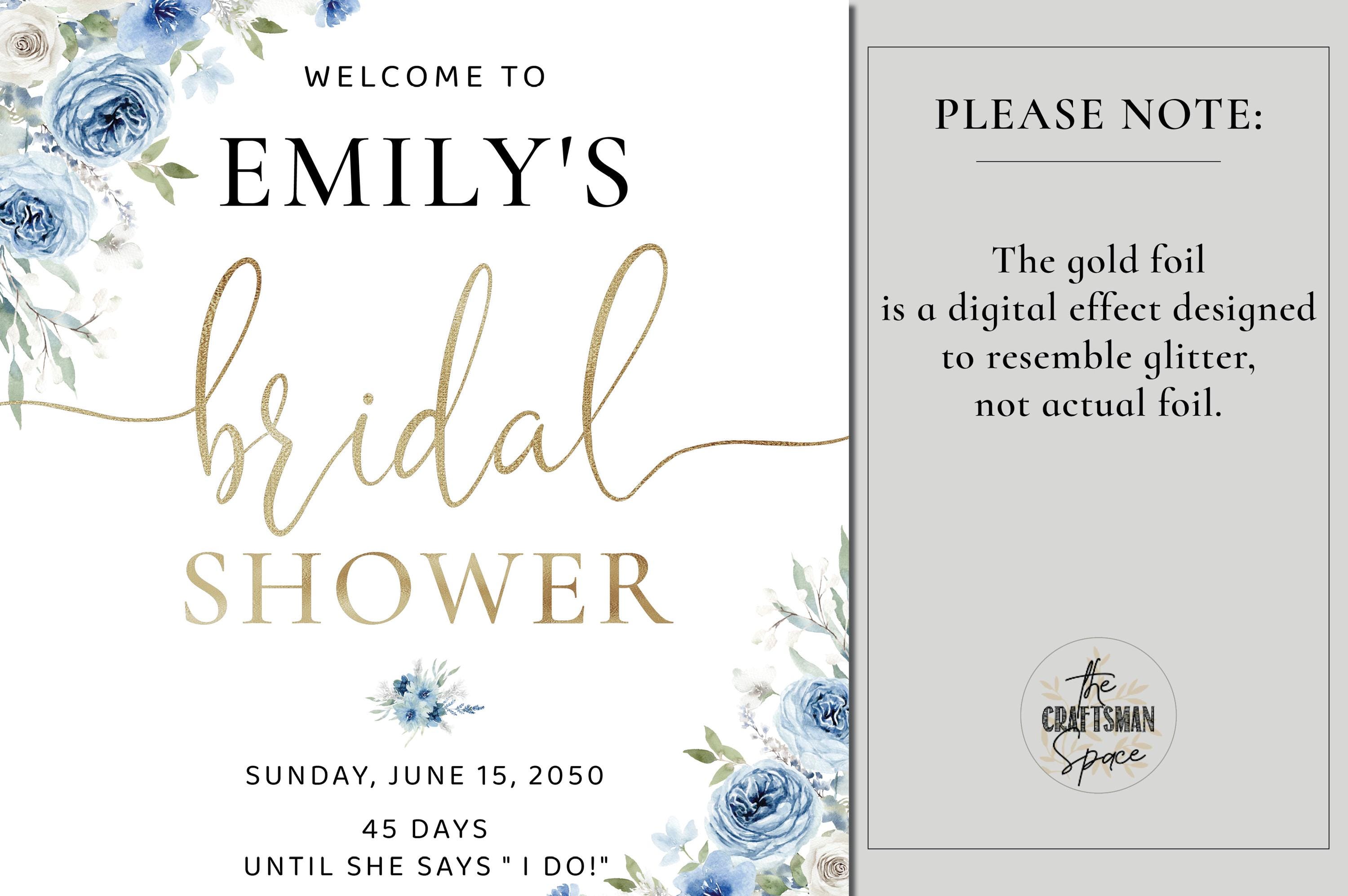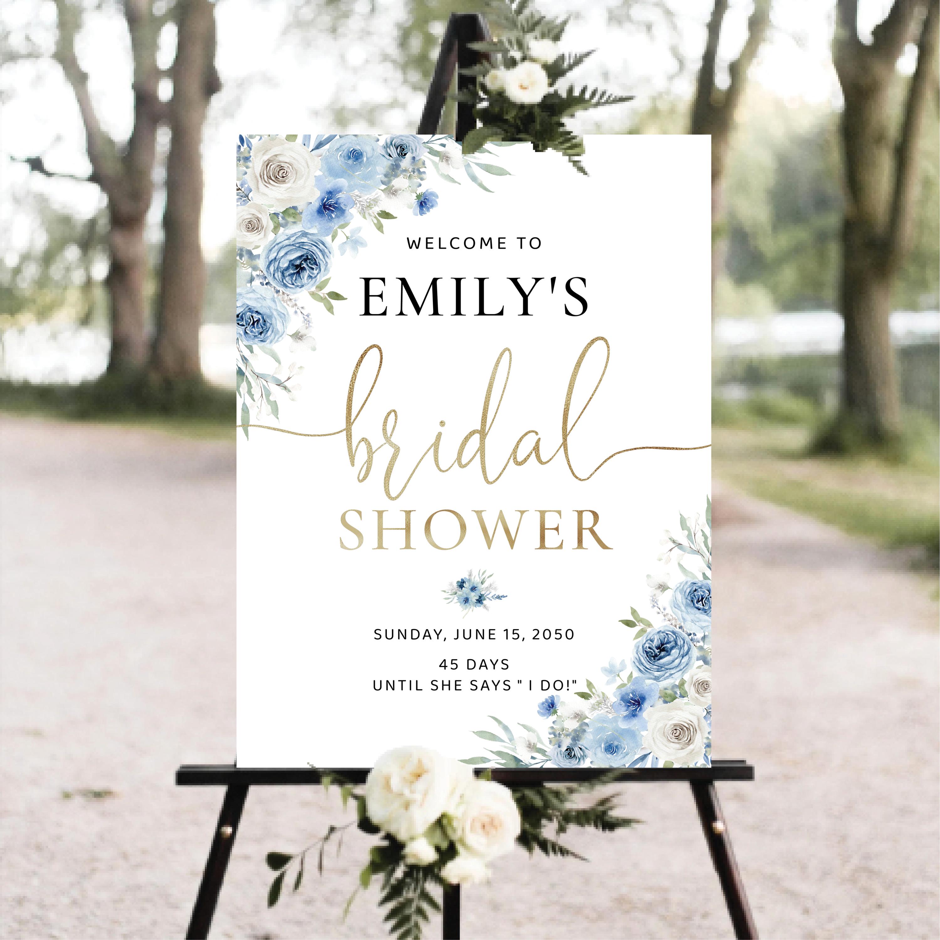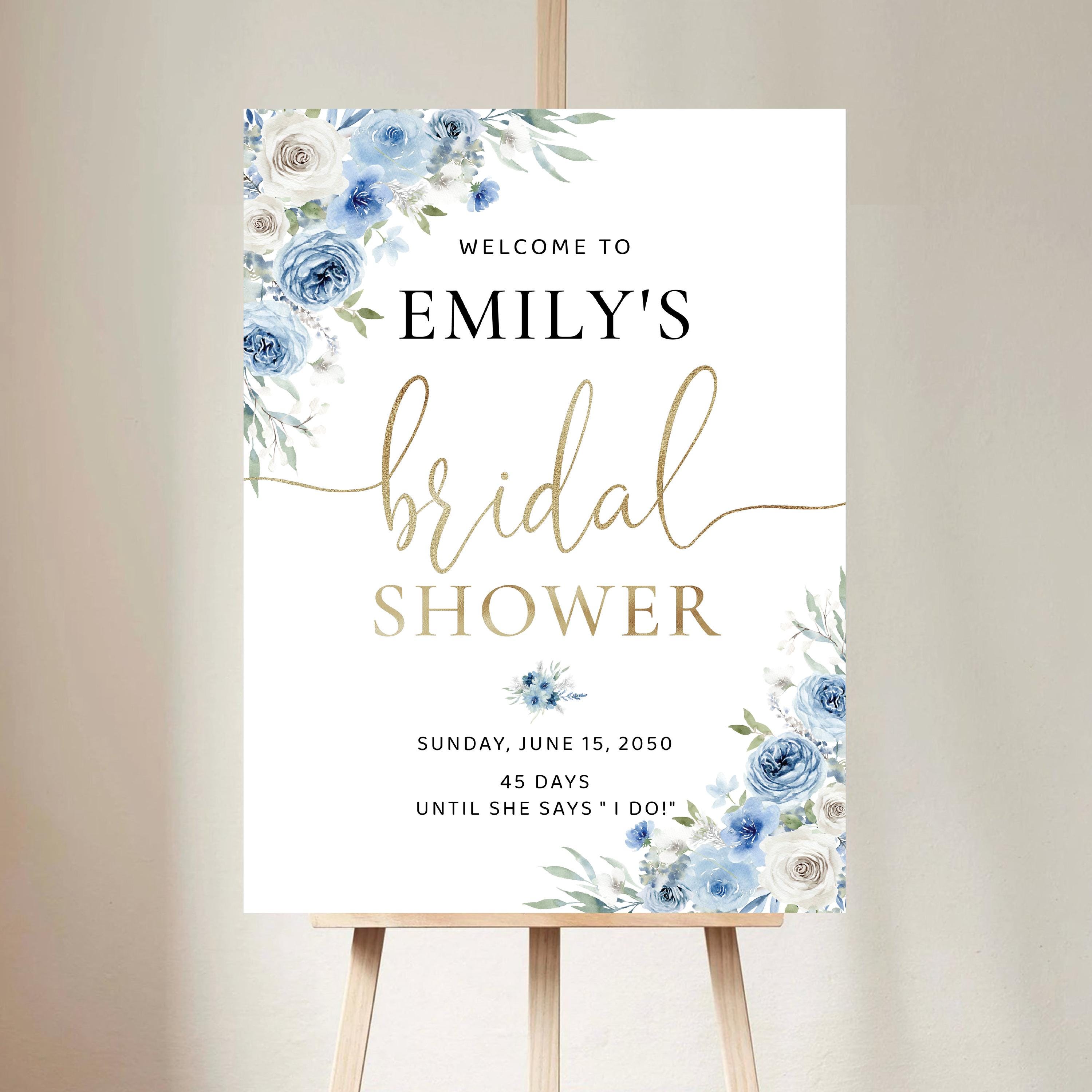 The Blue Floral Bridal Shower Welcome Sign features a soft boho style with a beautiful blend of dusty blue and ivory flowers, accented with elegant faux gold details. The handwritten font adds a warm and romantic touch, making this welcome sign a stunning focal point for your bridal shower celebration. Available as a professionally printed sign or a high quality digital file, it can be easily customized to perfectly match your event theme and décor.