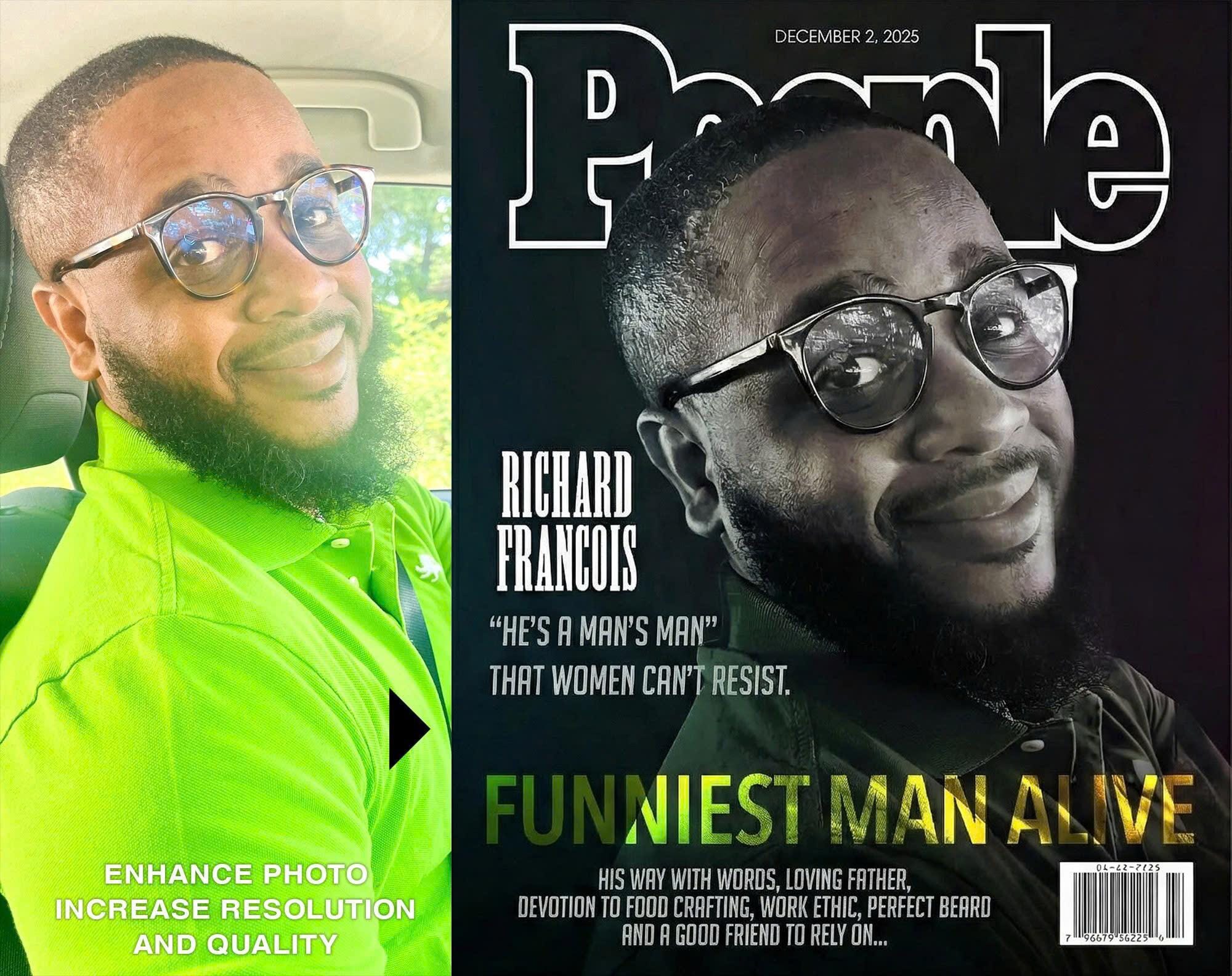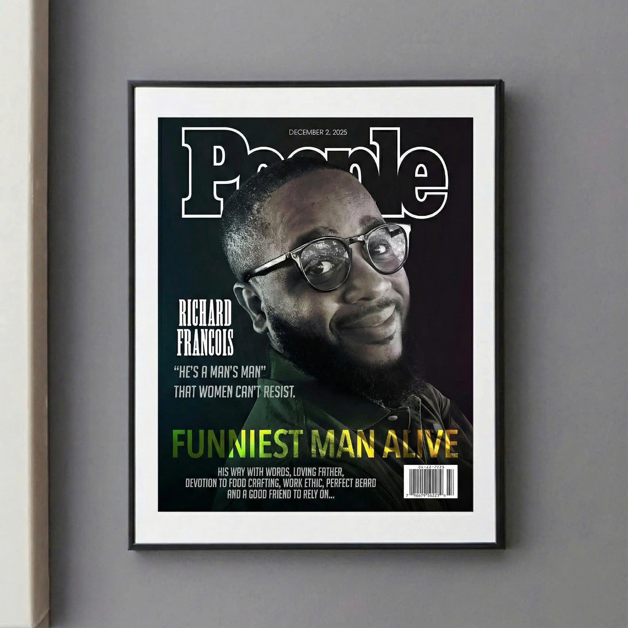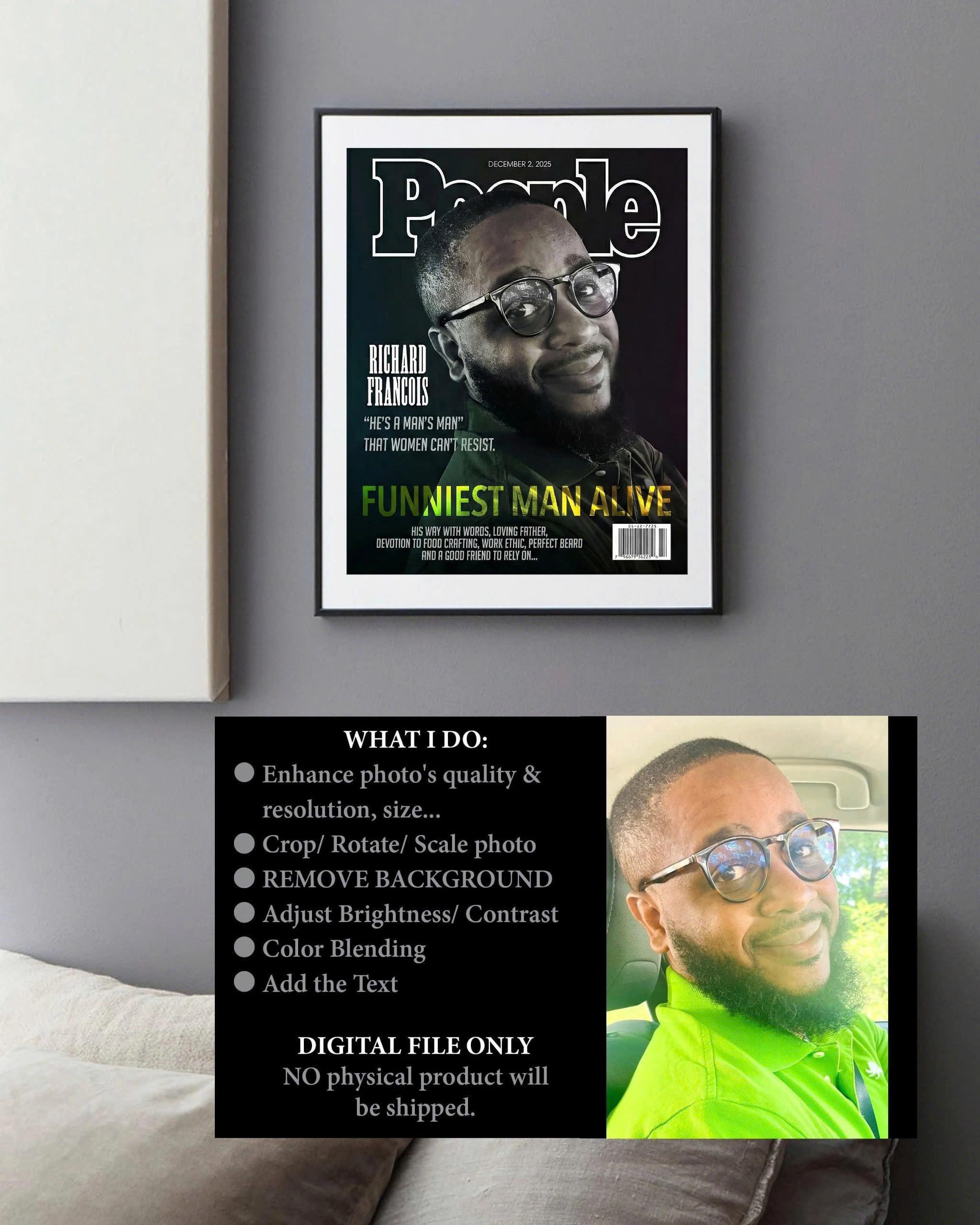 Custom Magazine Cover, People, Funniest Man Alive, Portrait Gift (Digital File)