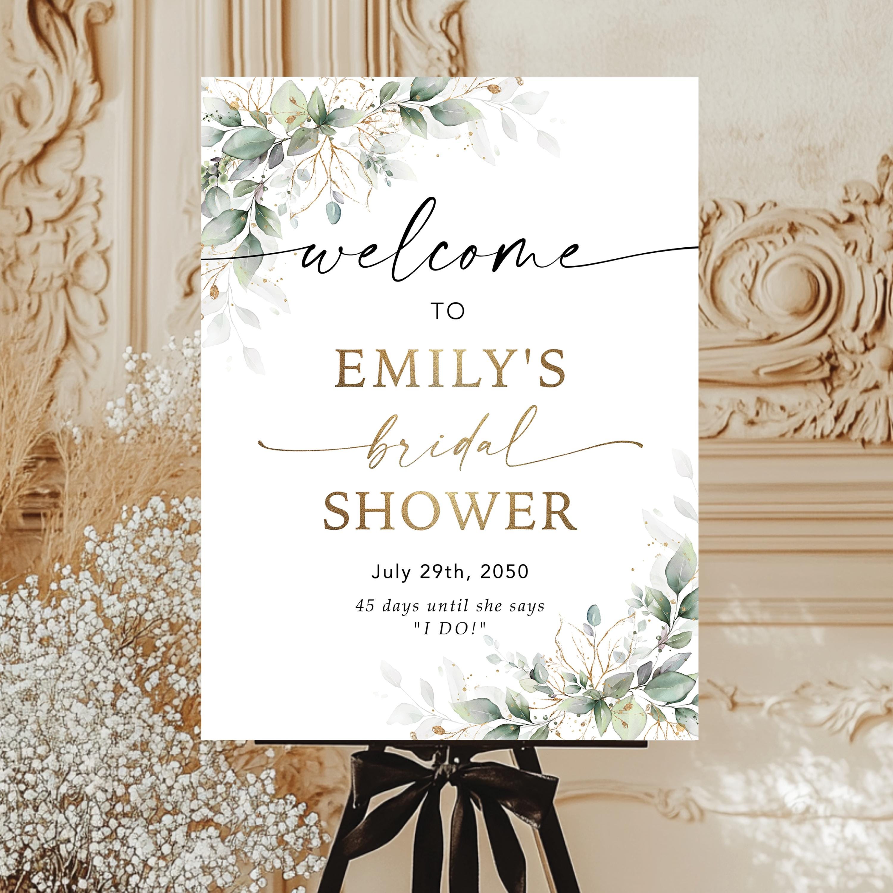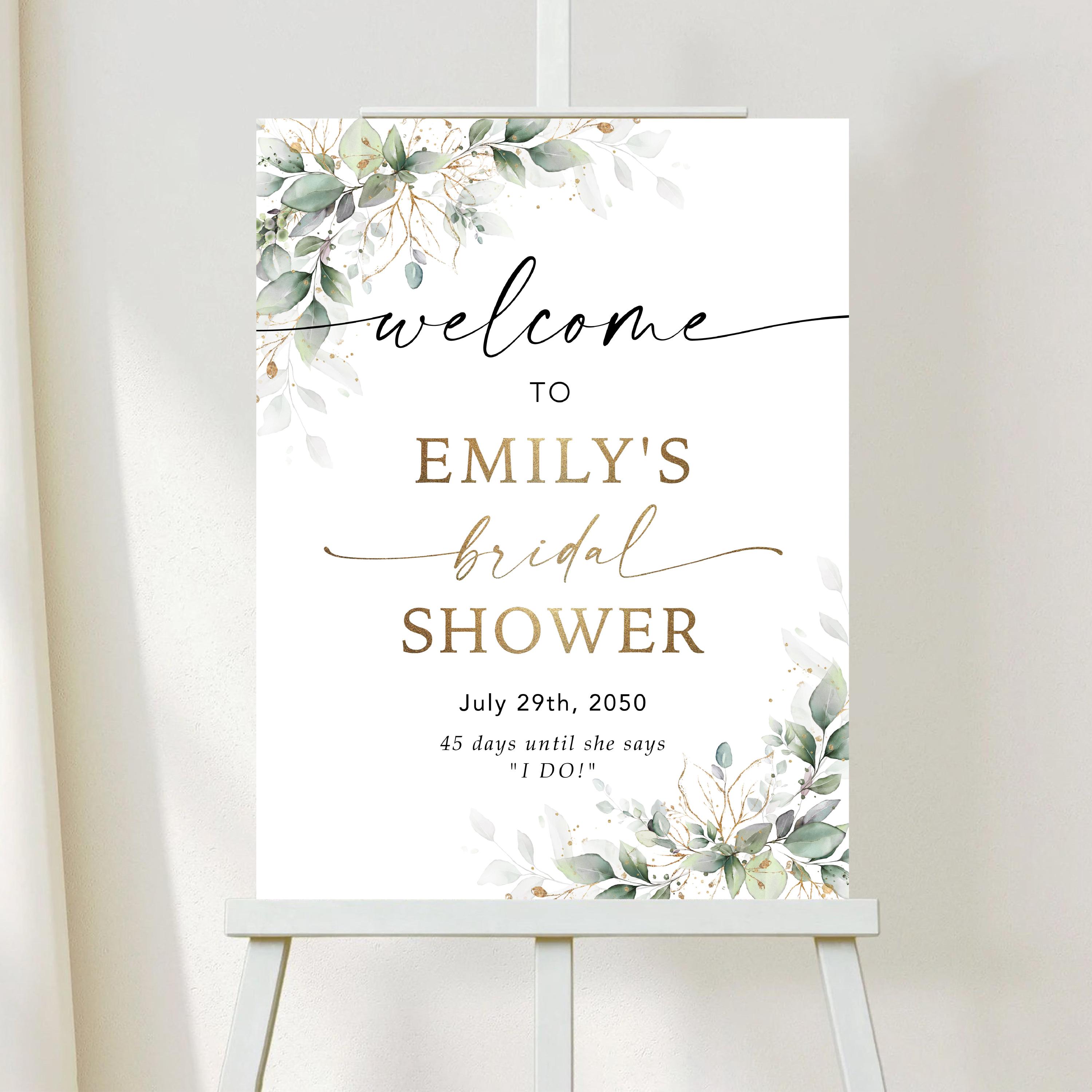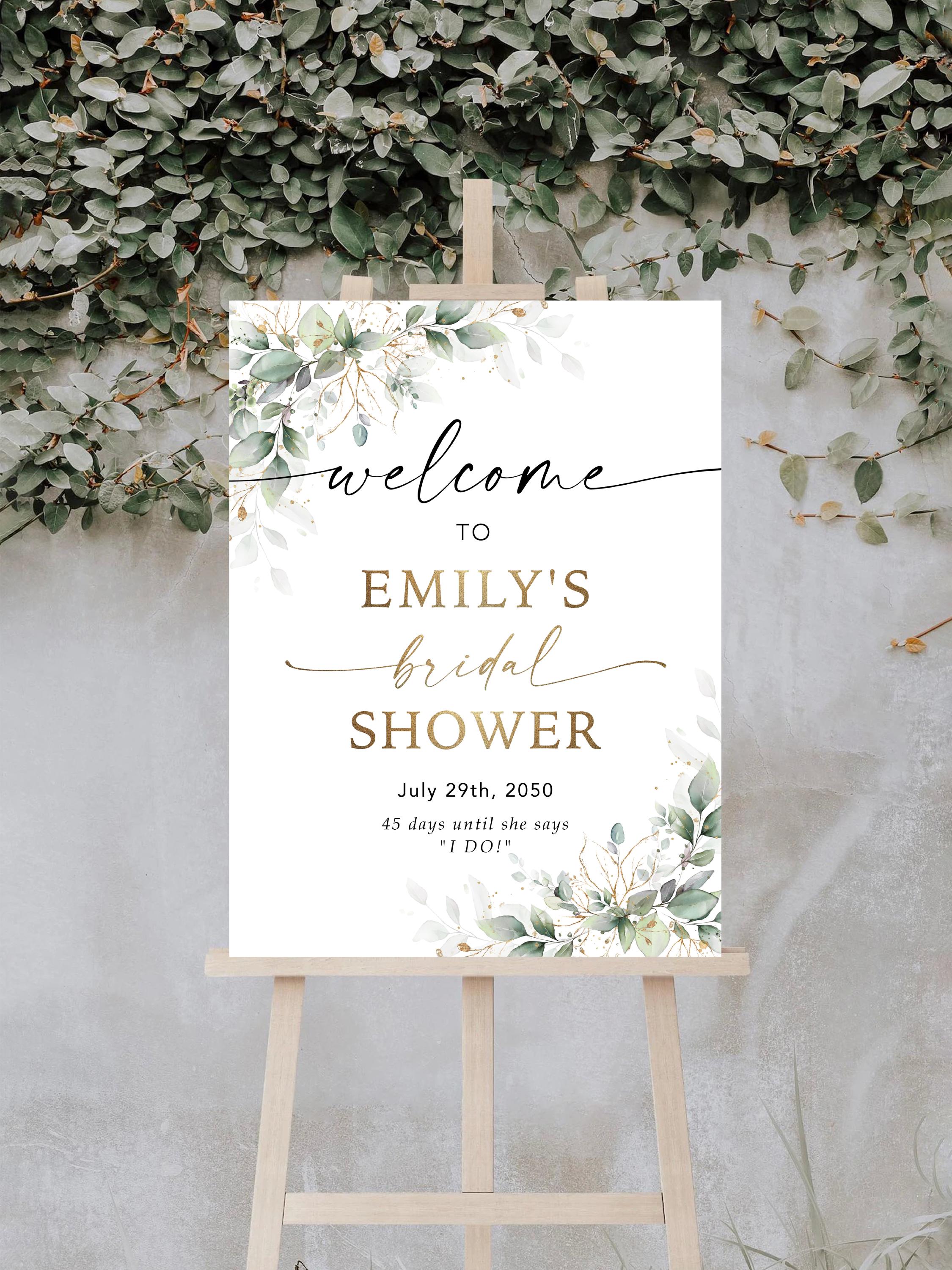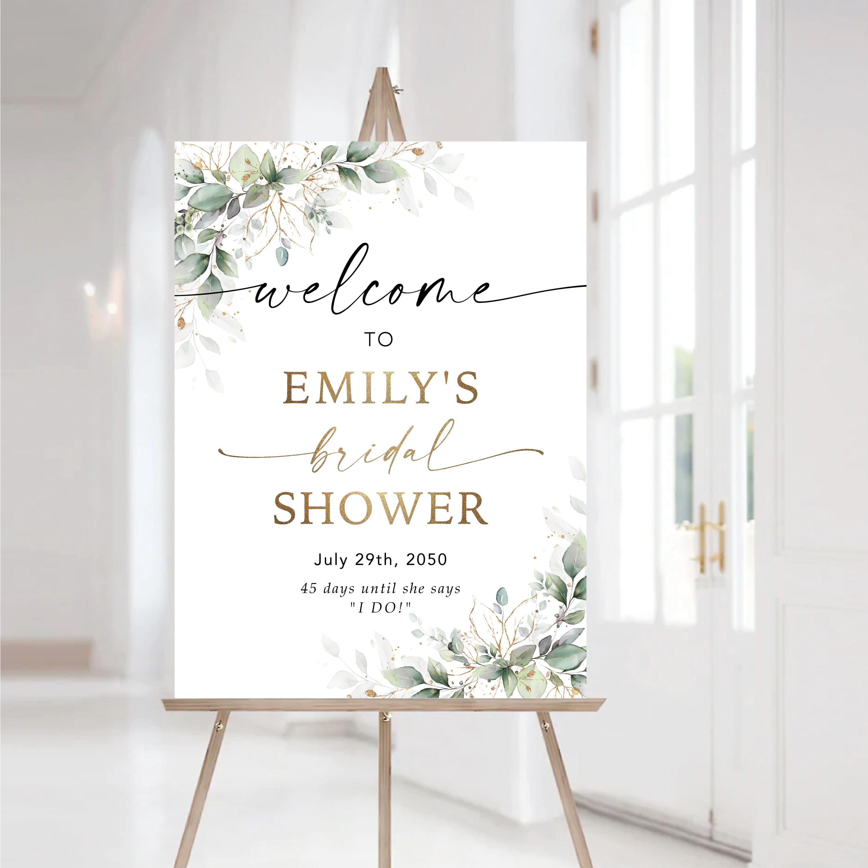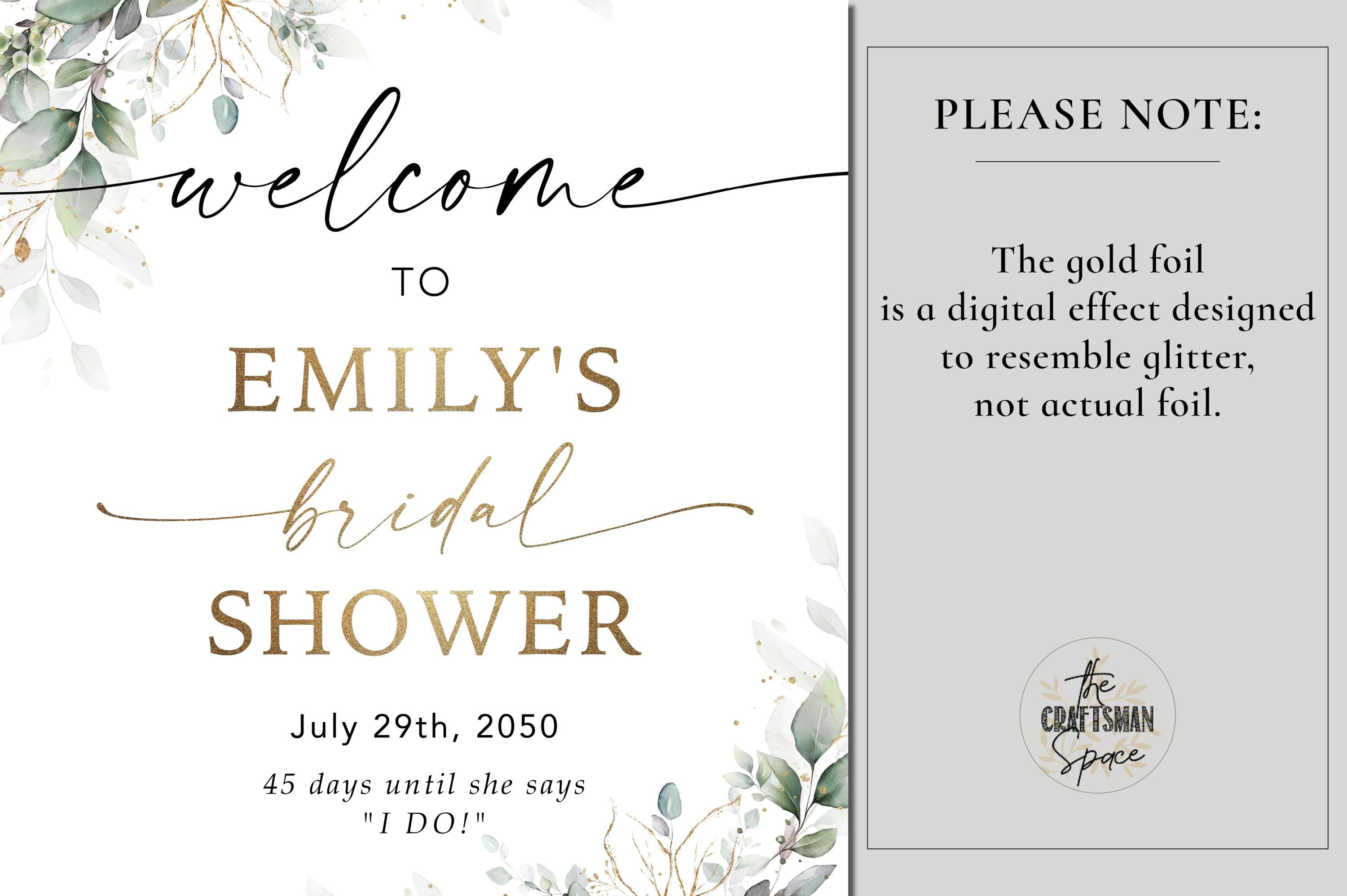 The Greenery Bridal Shower Welcome Sign features a refined and elegant style, highlighted by soft green foliage motifs combined with faux gold lettering and a graceful handwritten-style font. This design creates a warm and luxurious atmosphere for your bridal shower celebration. The sign can be personalized with your event details and is available as a printed version or a digital file, making it easy to choose what best suits your needs. Perfect for bridal showers, weddings, or special celebrations with a natural, modern aesthetic.