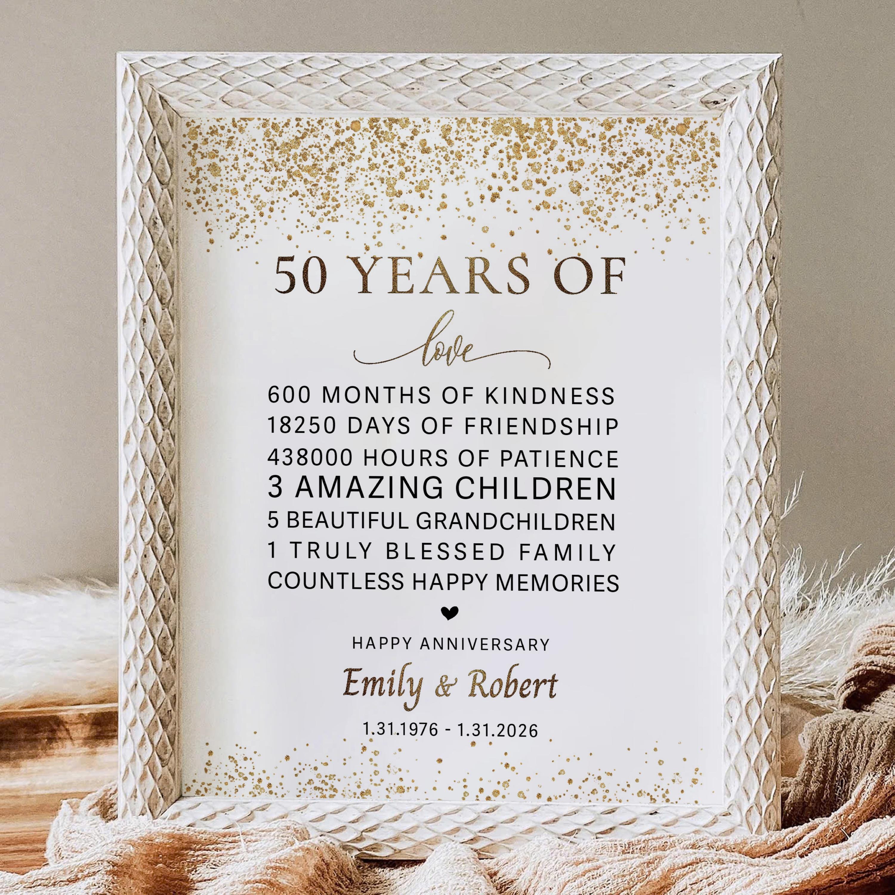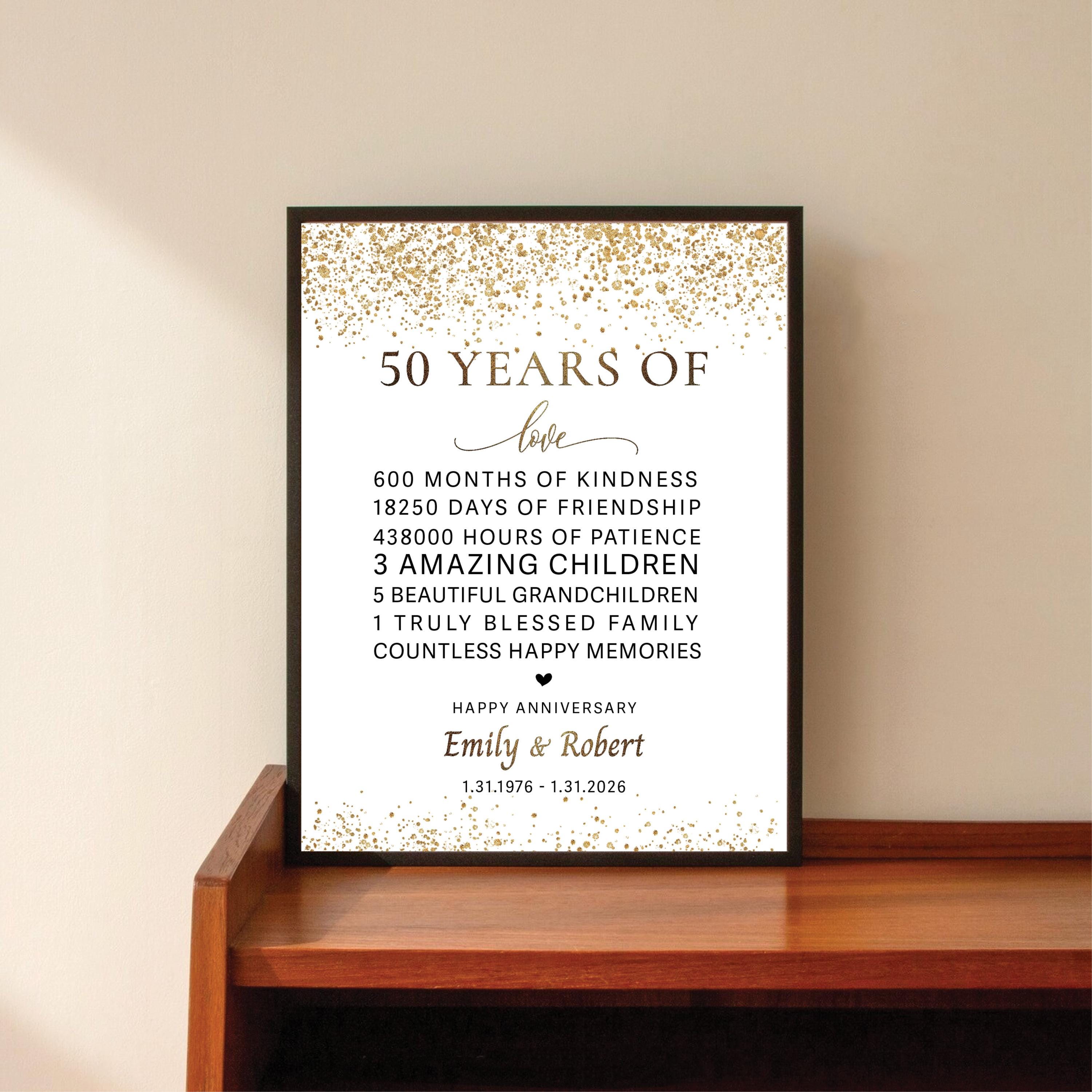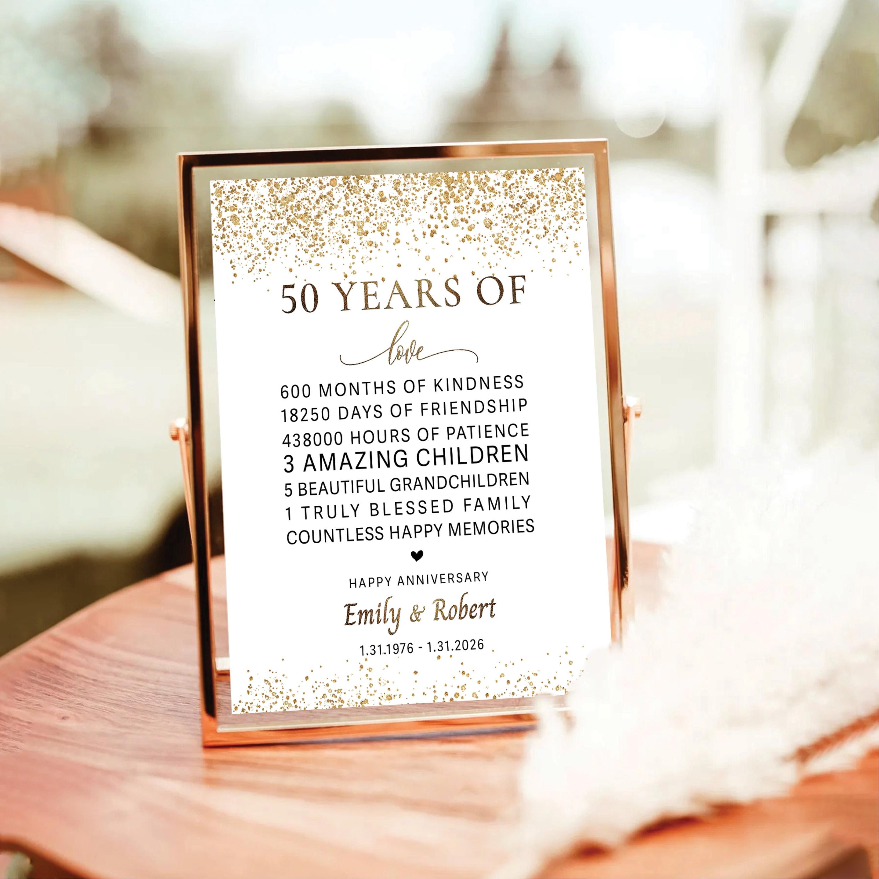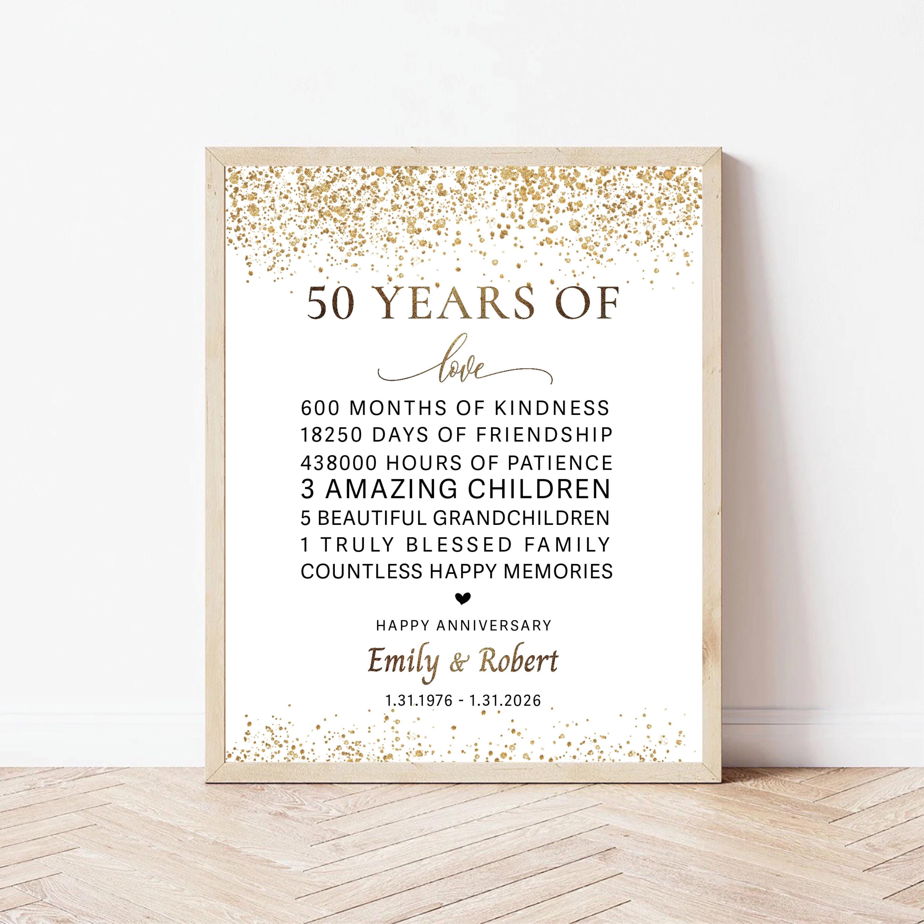 Golden 50 Years of Love Sign, Modern 50th Wedding Anniversary (Digital Printable)