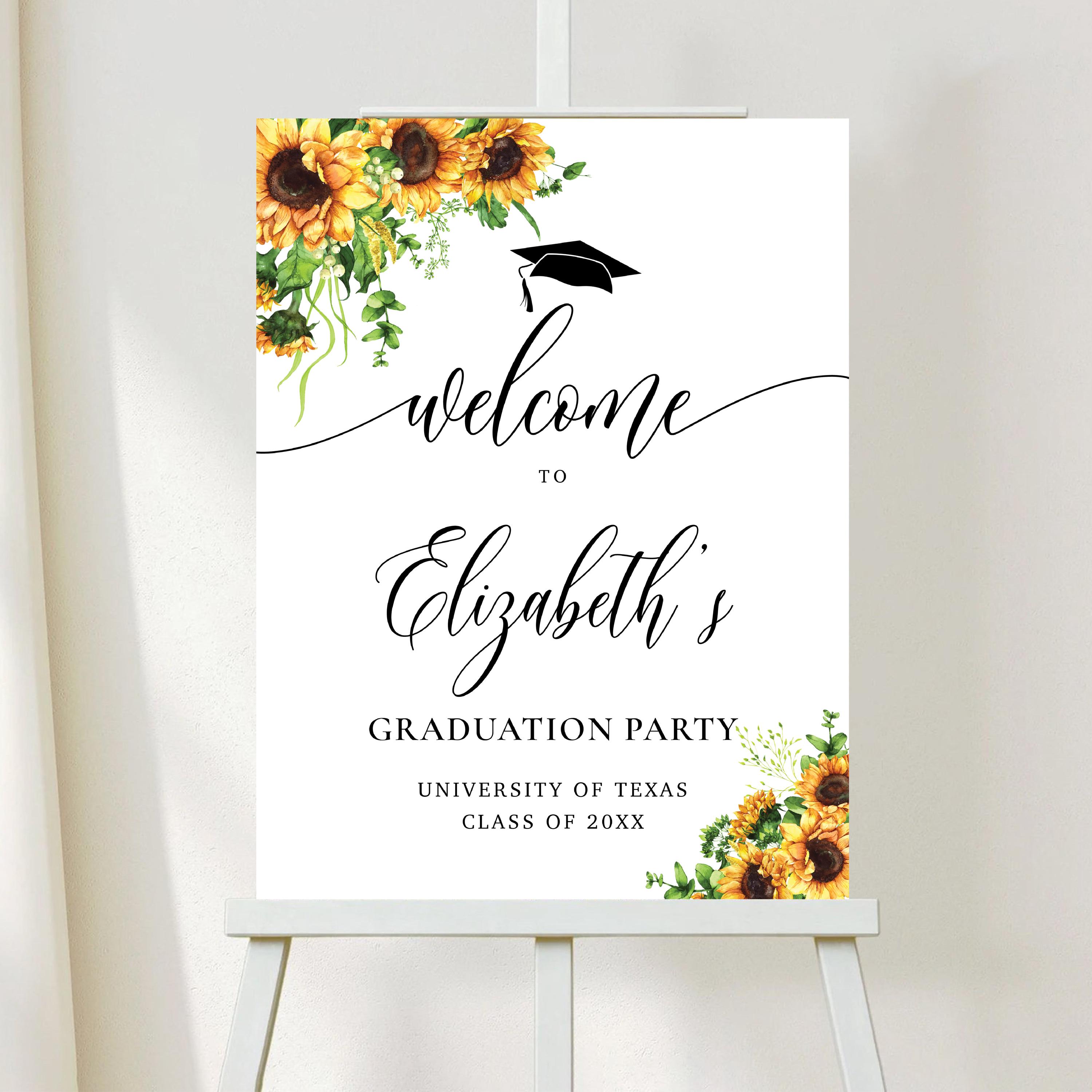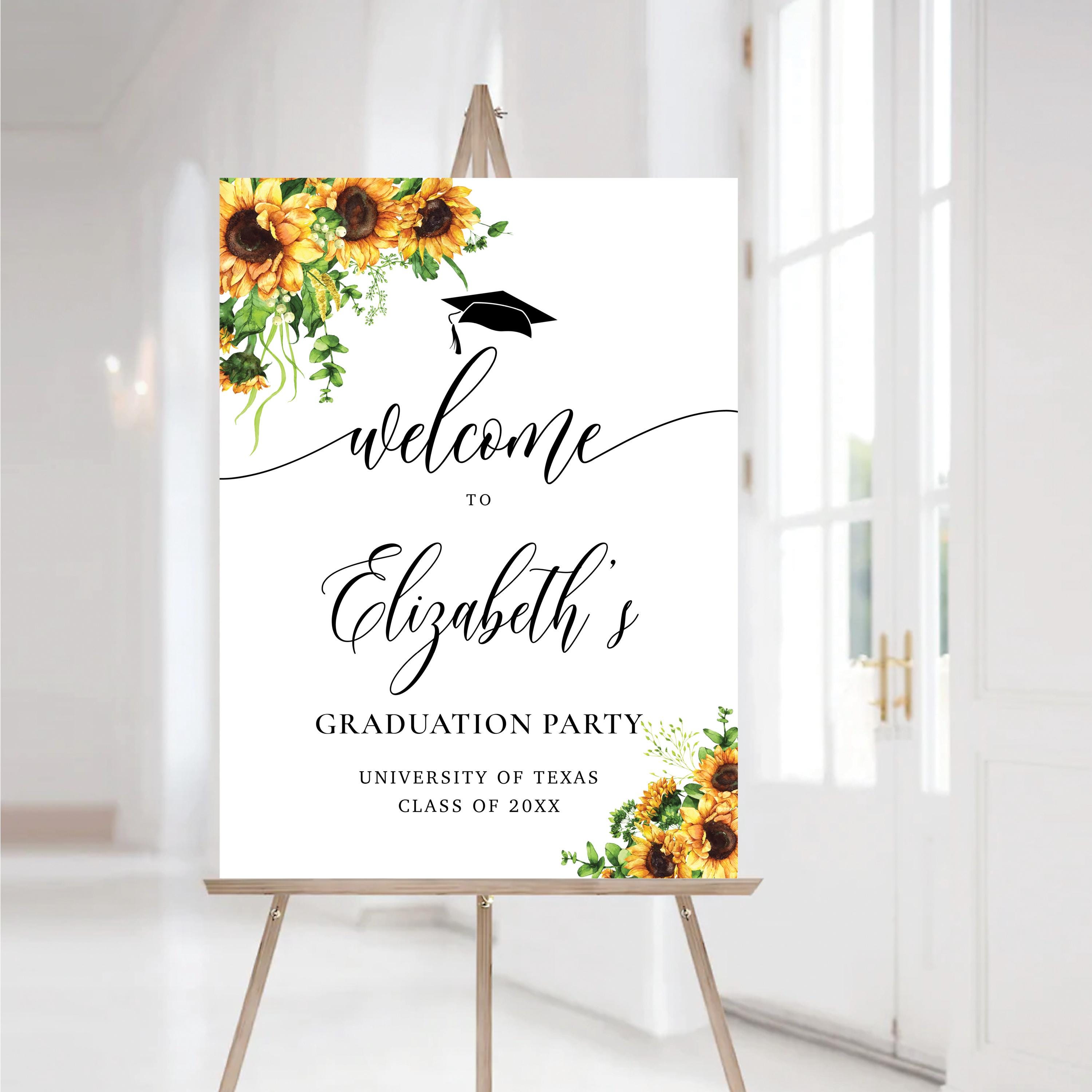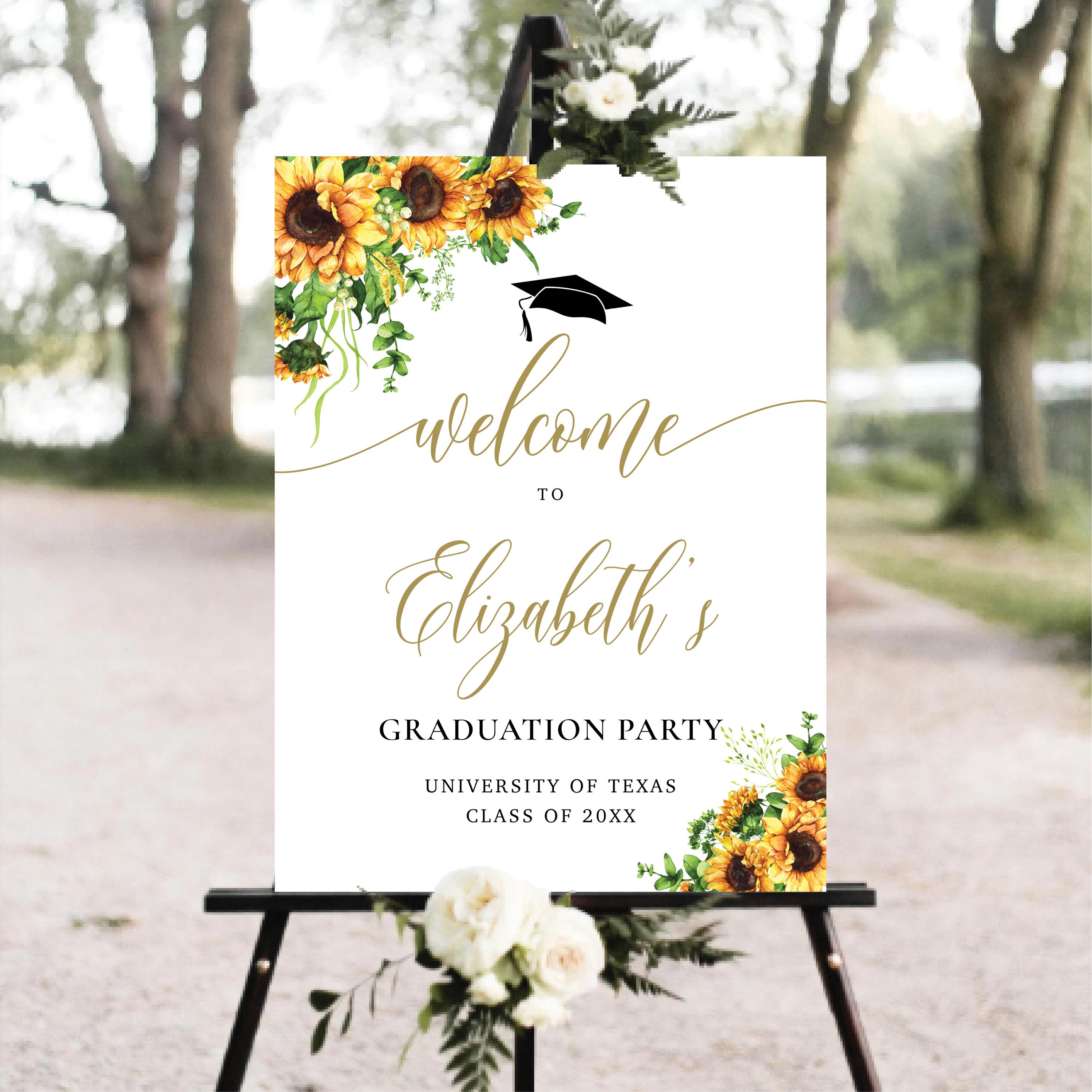 Welcome your guests with warmth and joy using this Sunflowers Graduation Party Welcome Sign.