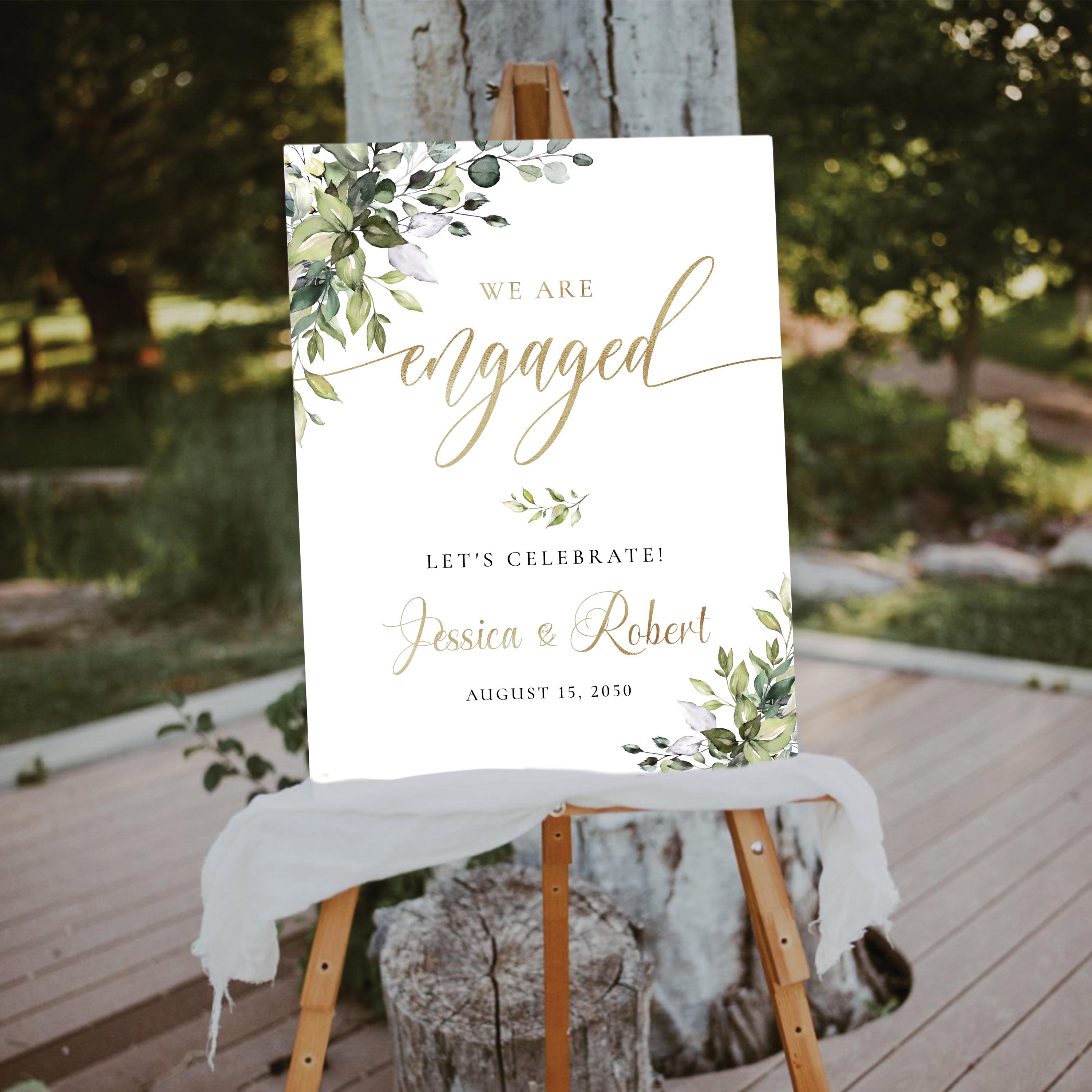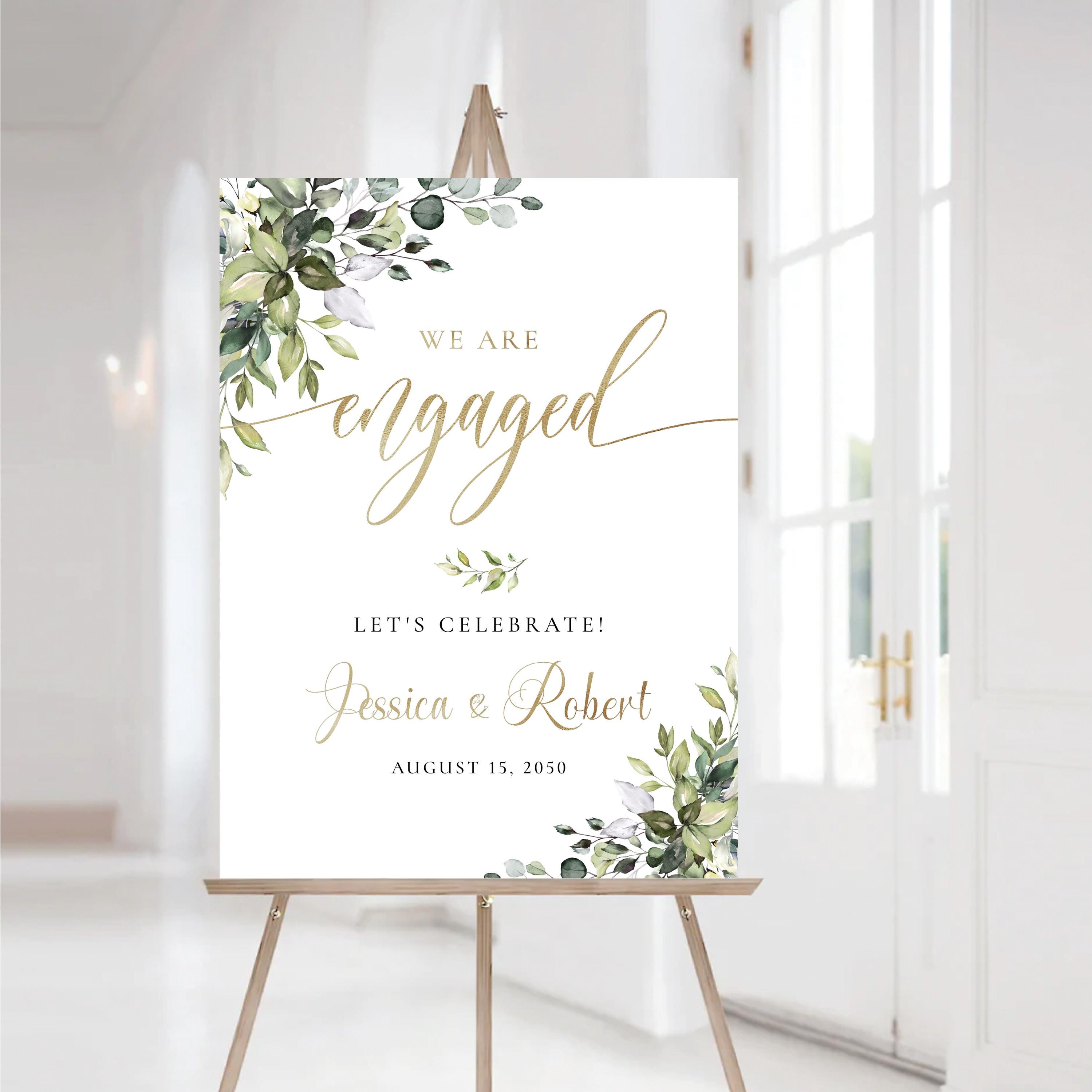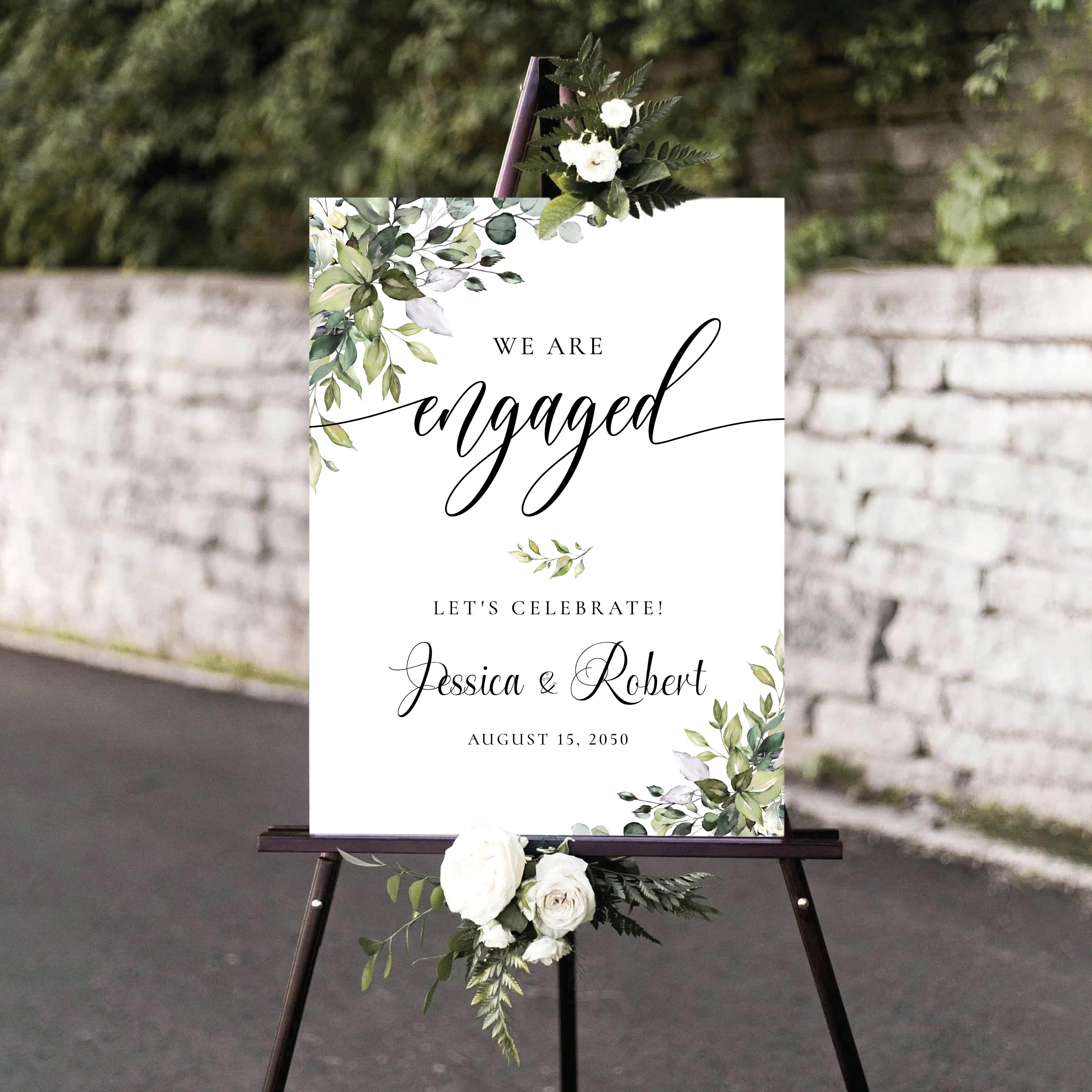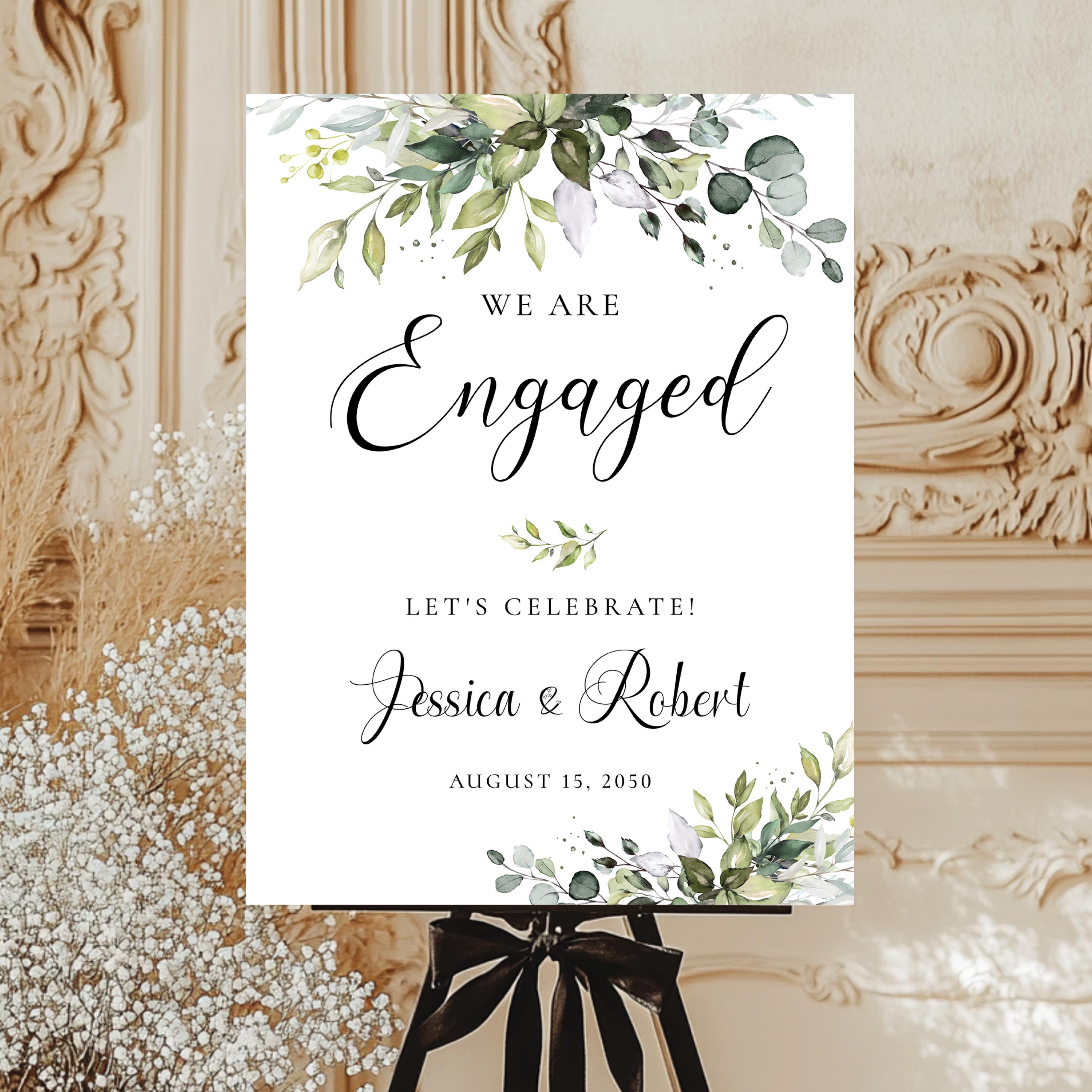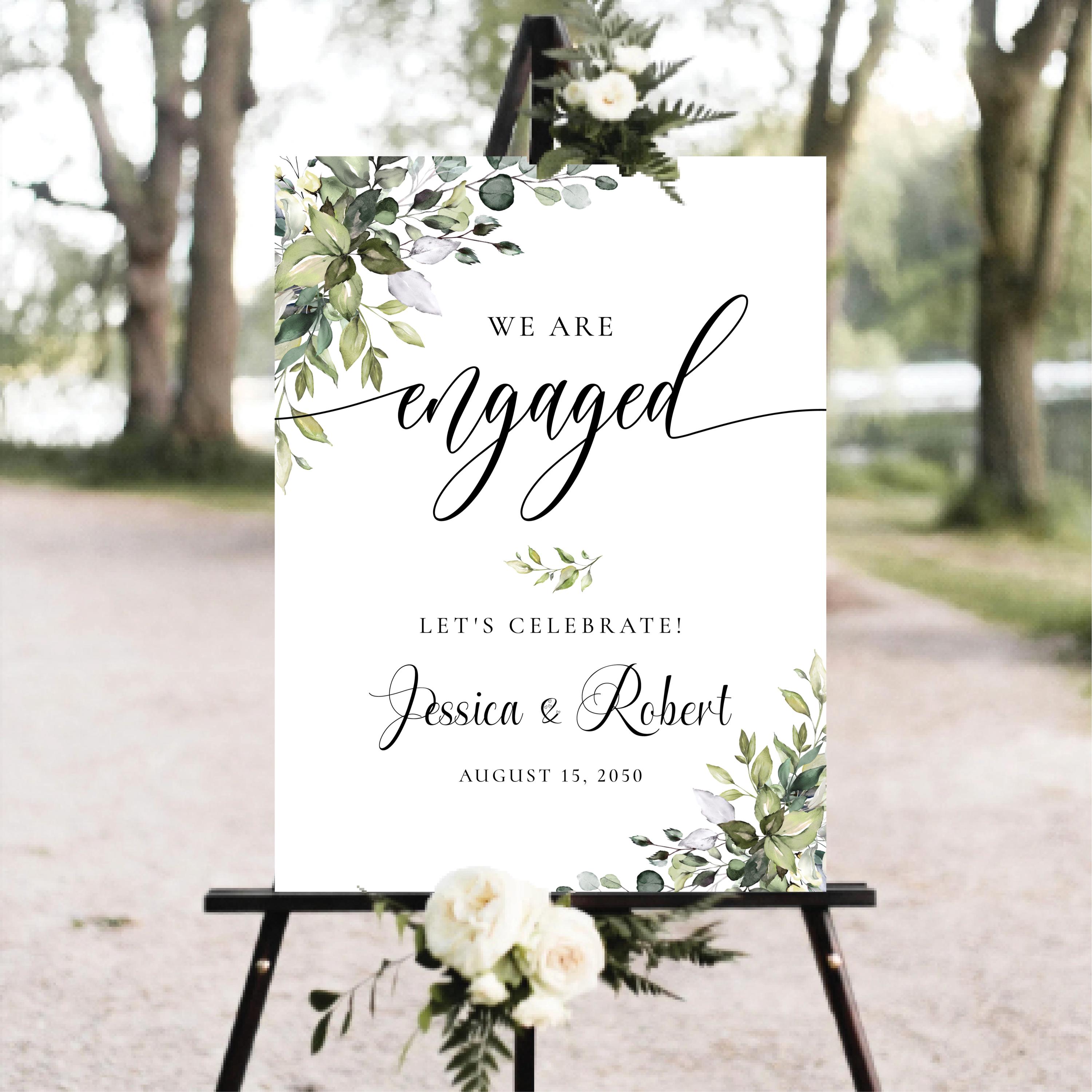 Greenery We are Engaged Welcome Sign, Botanical Engagement Party Poster (Digital Printable)