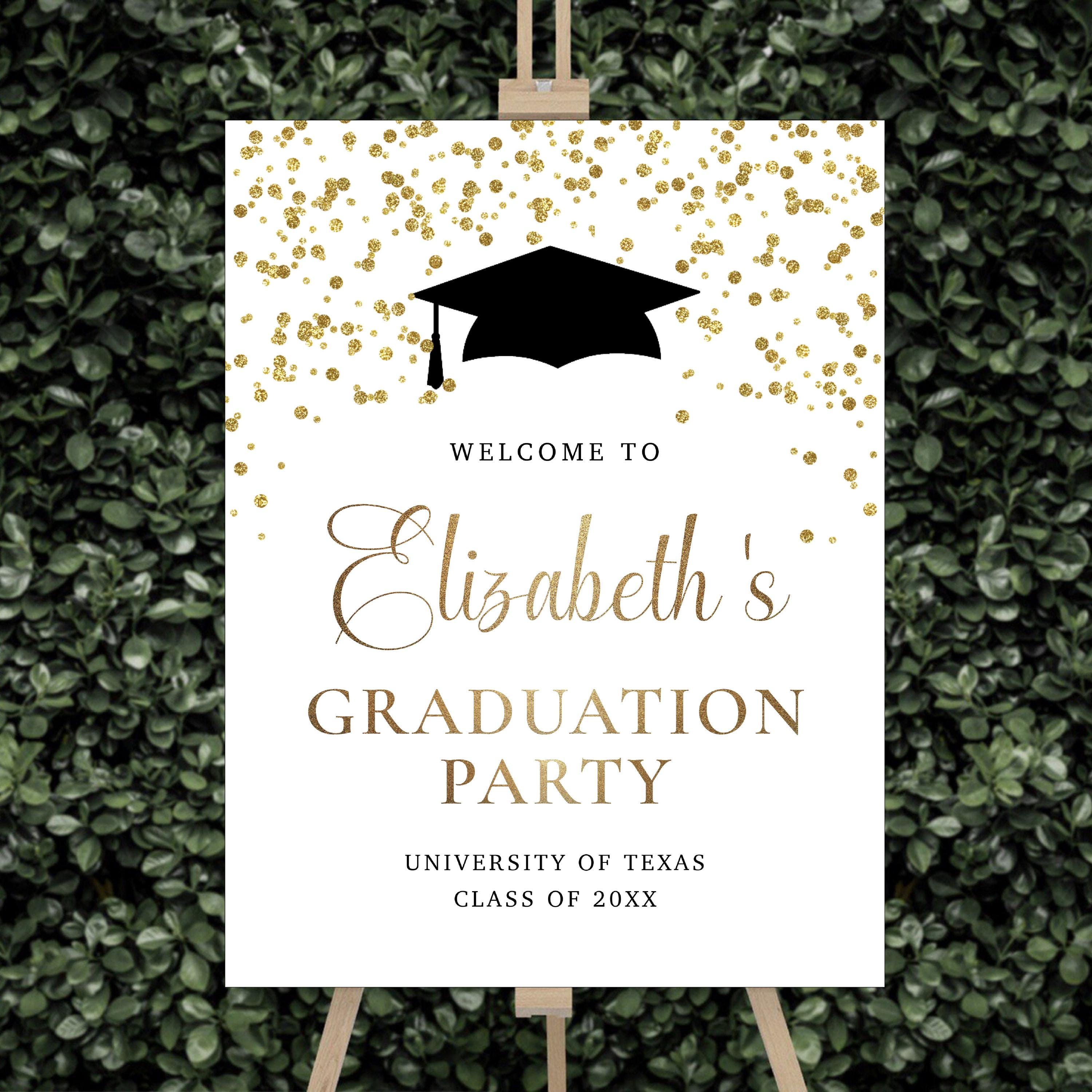 The sign can be personalized with your event details and the background color can be changed to any color you prefer, making it easy to match your graduation theme and create a warm welcome for your guests.