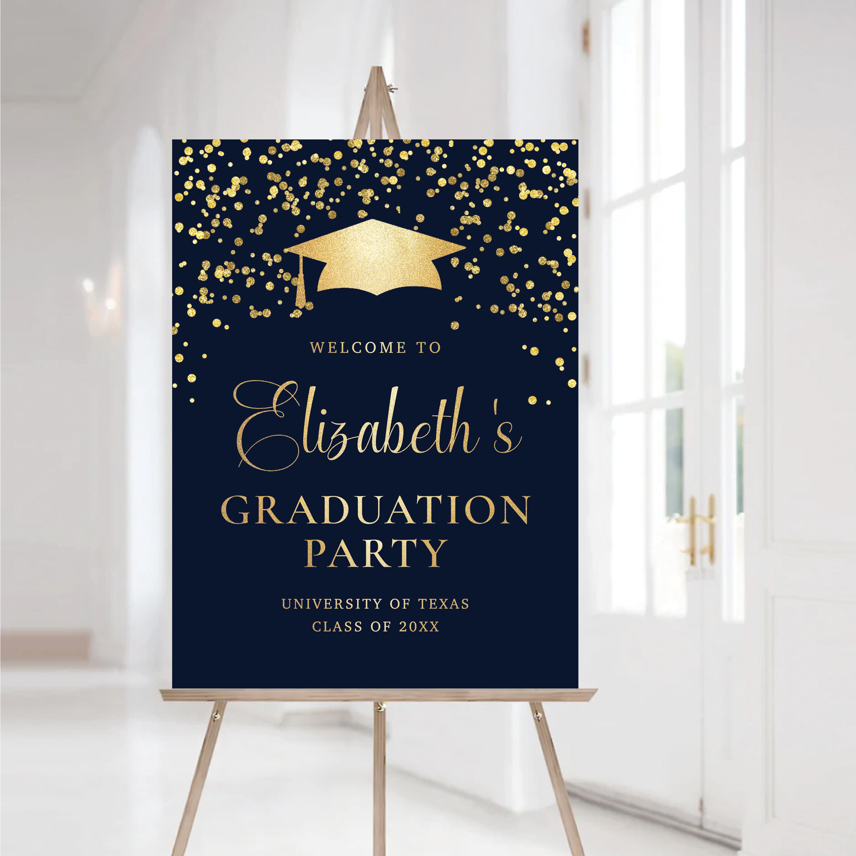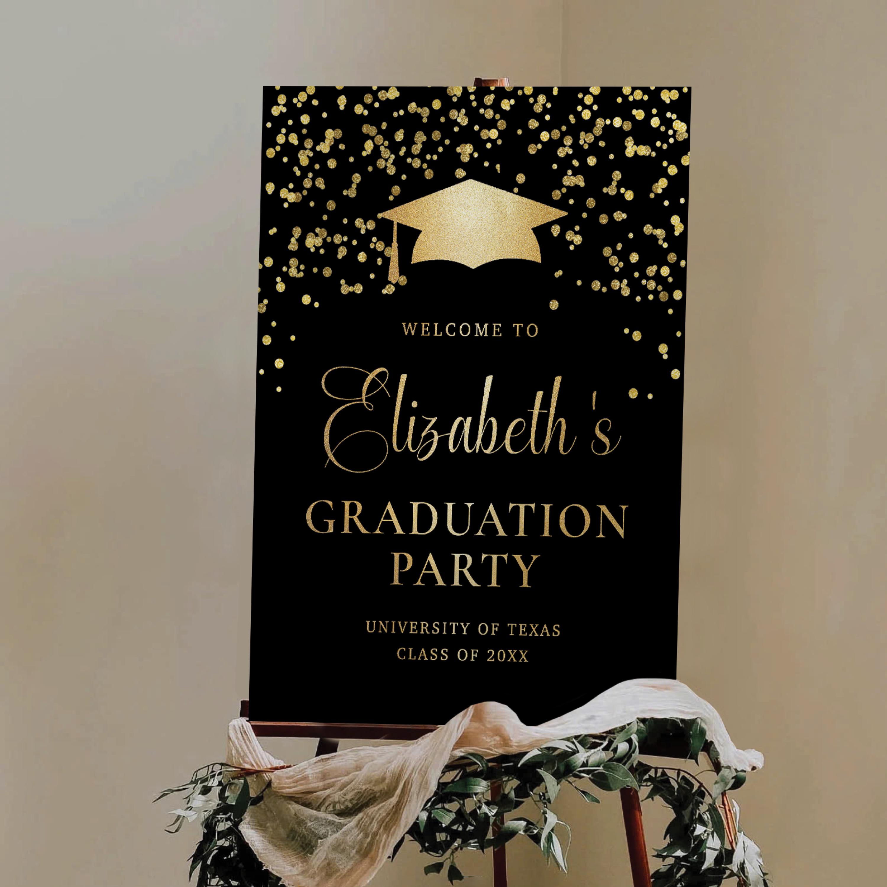The sign can be personalized with your event details and the background color can be changed to any color you prefer, making it easy to match your graduation theme and create a warm welcome for your guests.