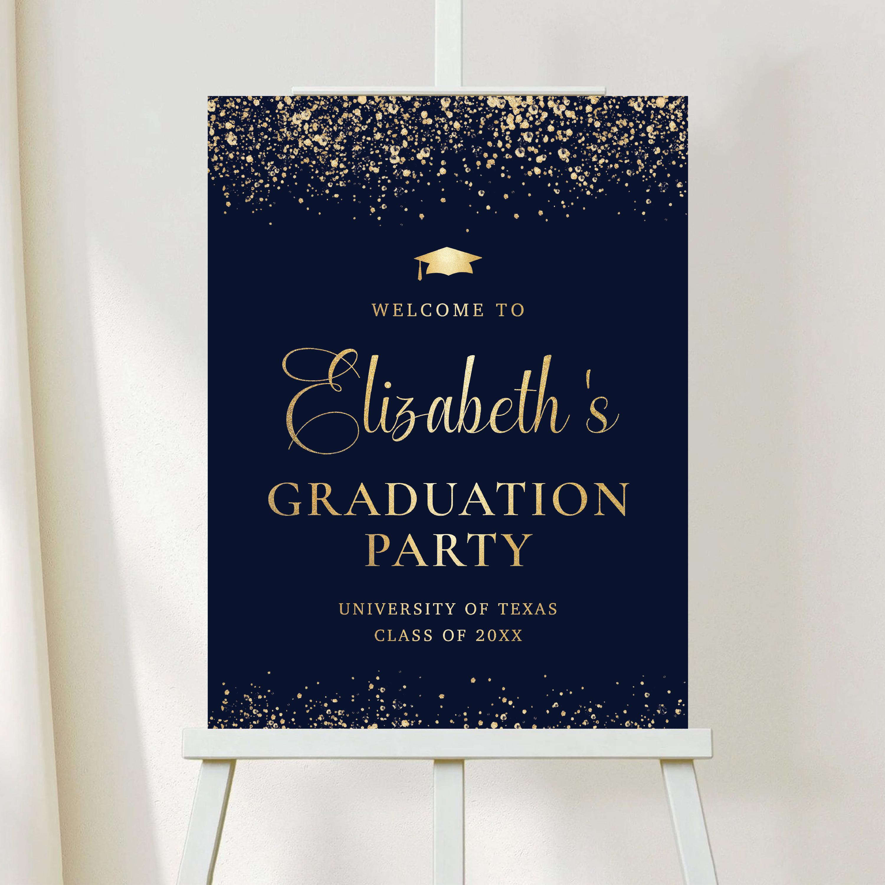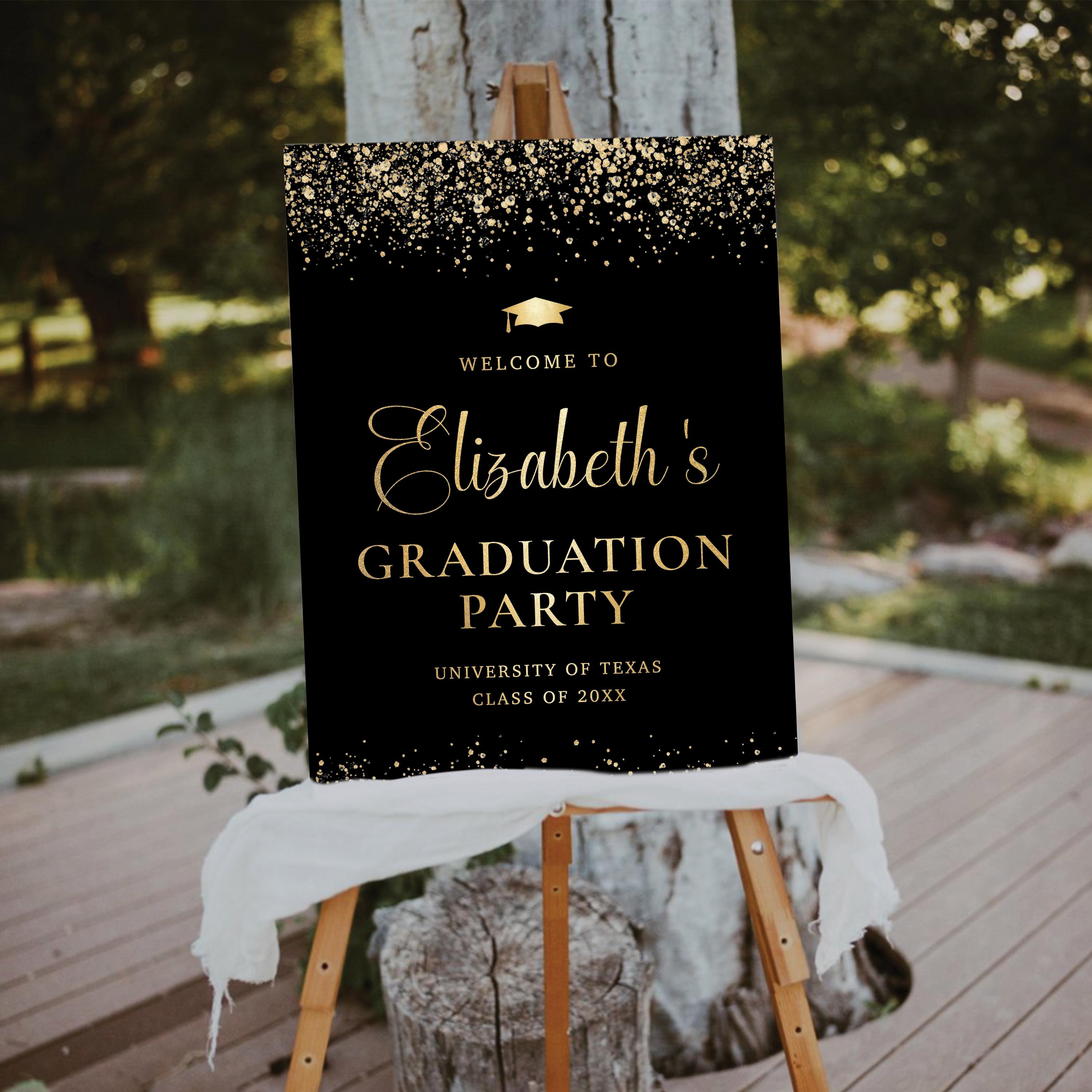 The sign can be personalized with your event details and the background color can be changed to any color you prefer, making it easy to match your graduation theme and create a warm welcome for your guests.