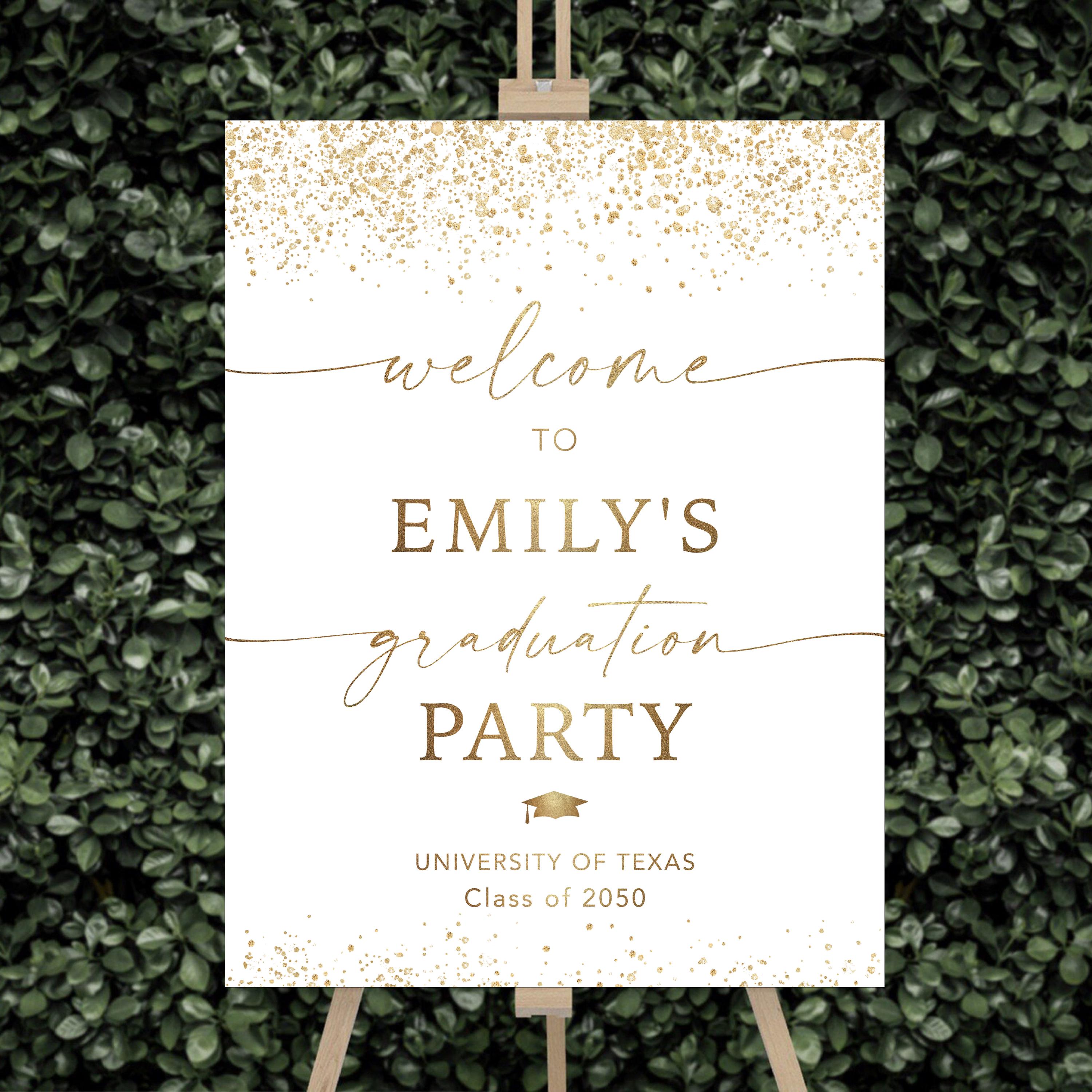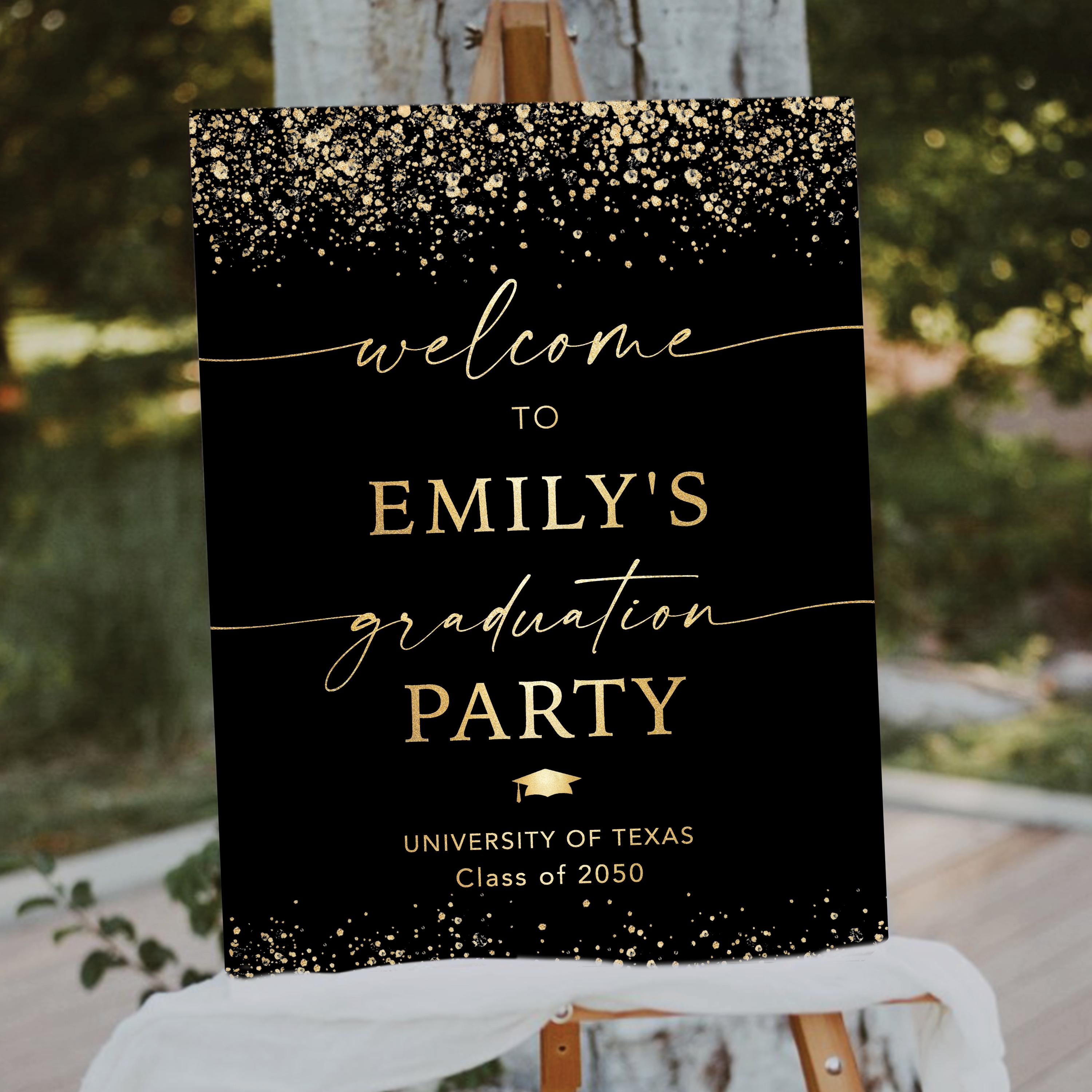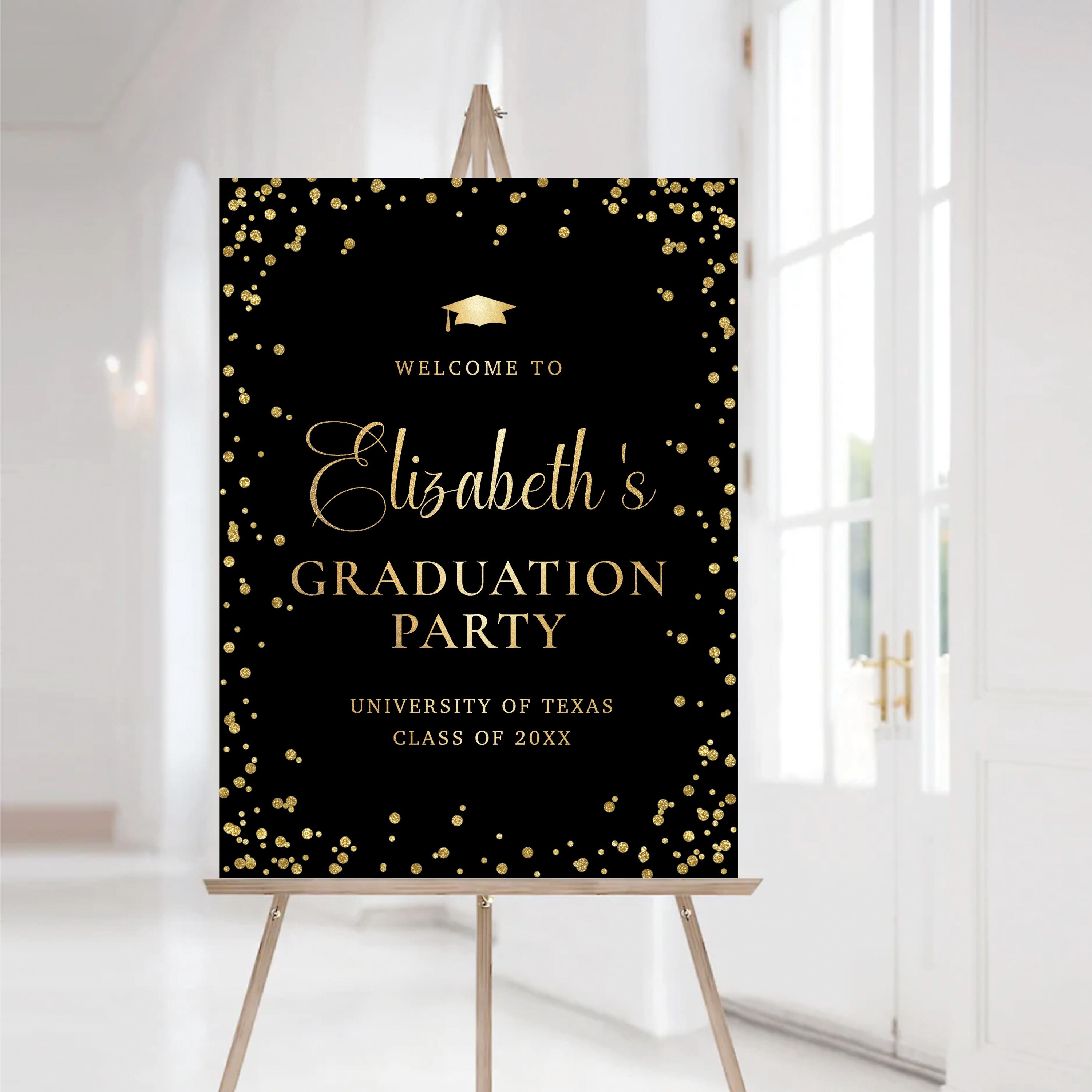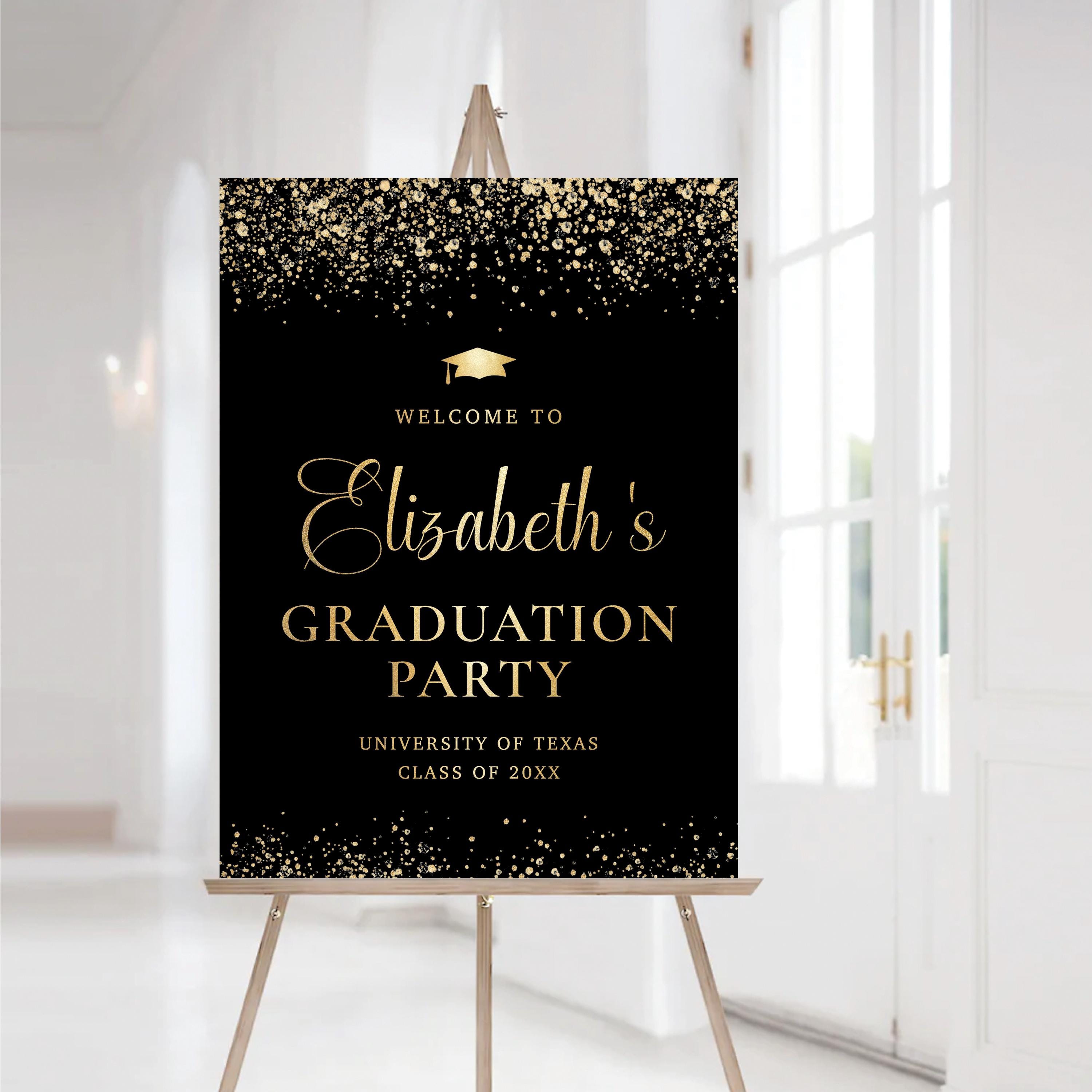 The sign can be personalized with your event details and the background color can be changed to any color you prefer, making it easy to match your graduation theme and create a warm welcome for your guests.