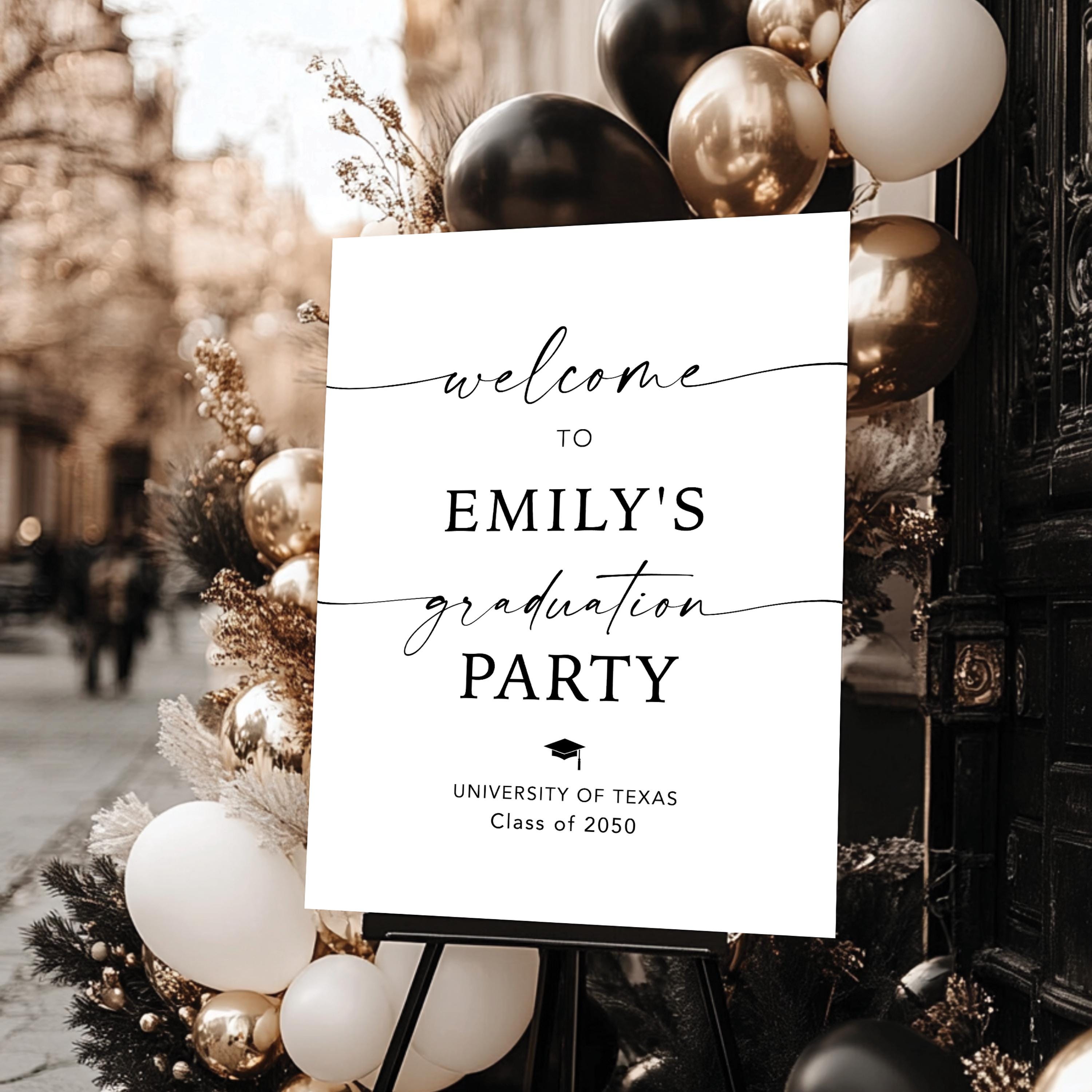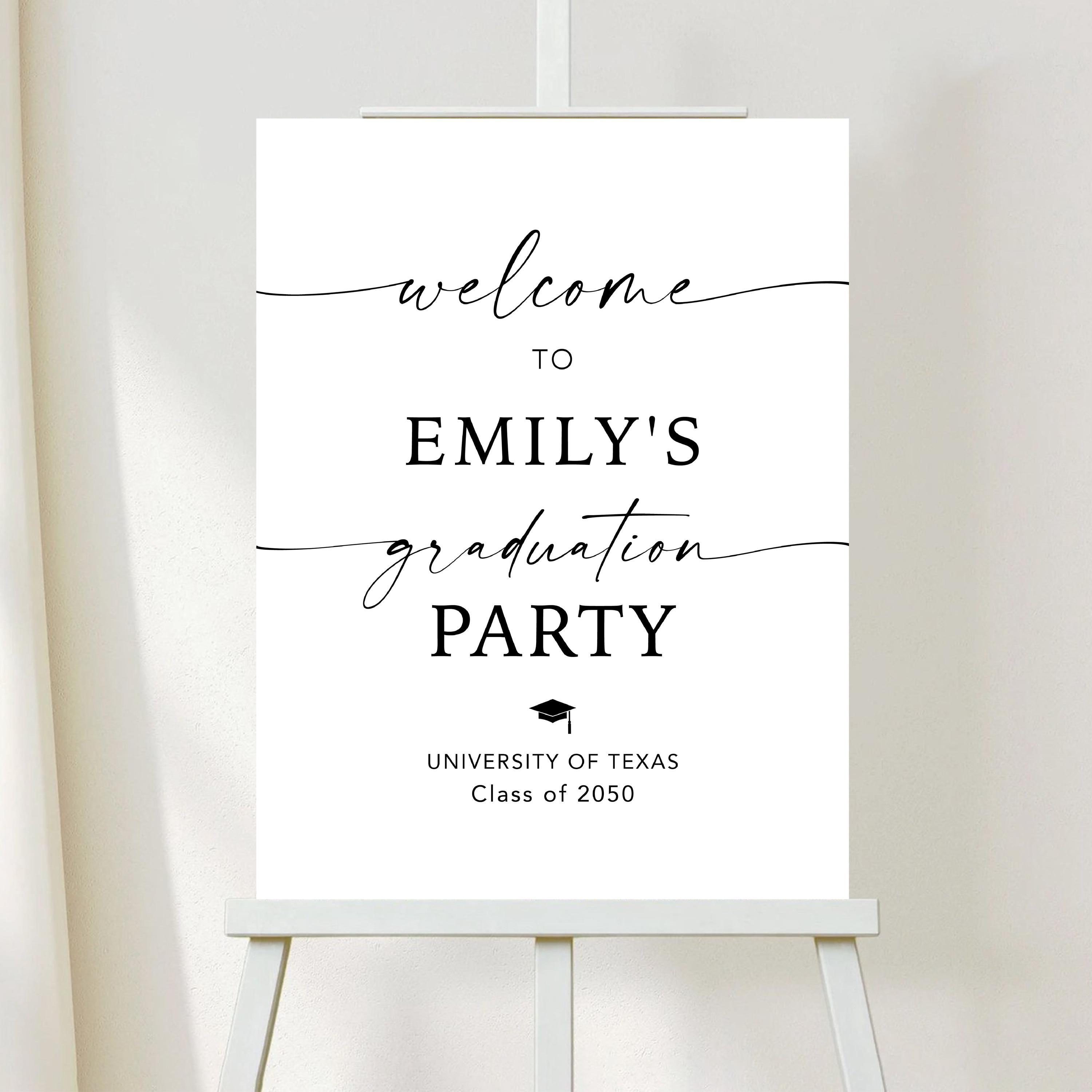 Modern Graduation Party Welcome Sign is a minimalist and modern welcome sign featuring an elegant and refined layout. This product is delivered as a digital file, making it easy and convenient for quick printing. Fully personalized with your event details, it adds a sophisticated and stylish touch to your graduation celebration.