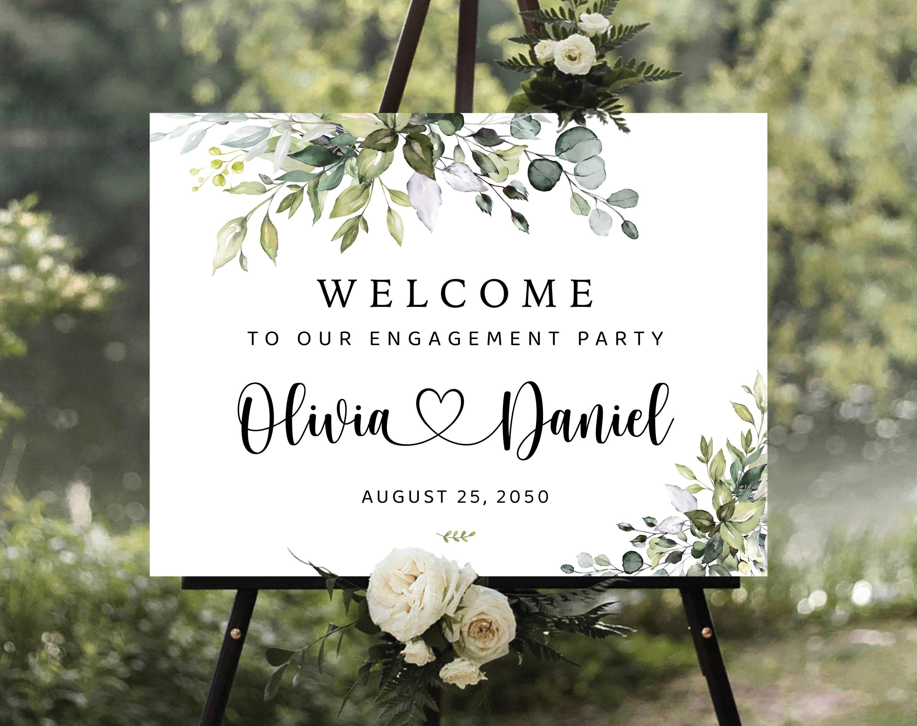 Greenery Engagement Party Welcome Sign, Botanical Engaged Poster (Digital Printable)