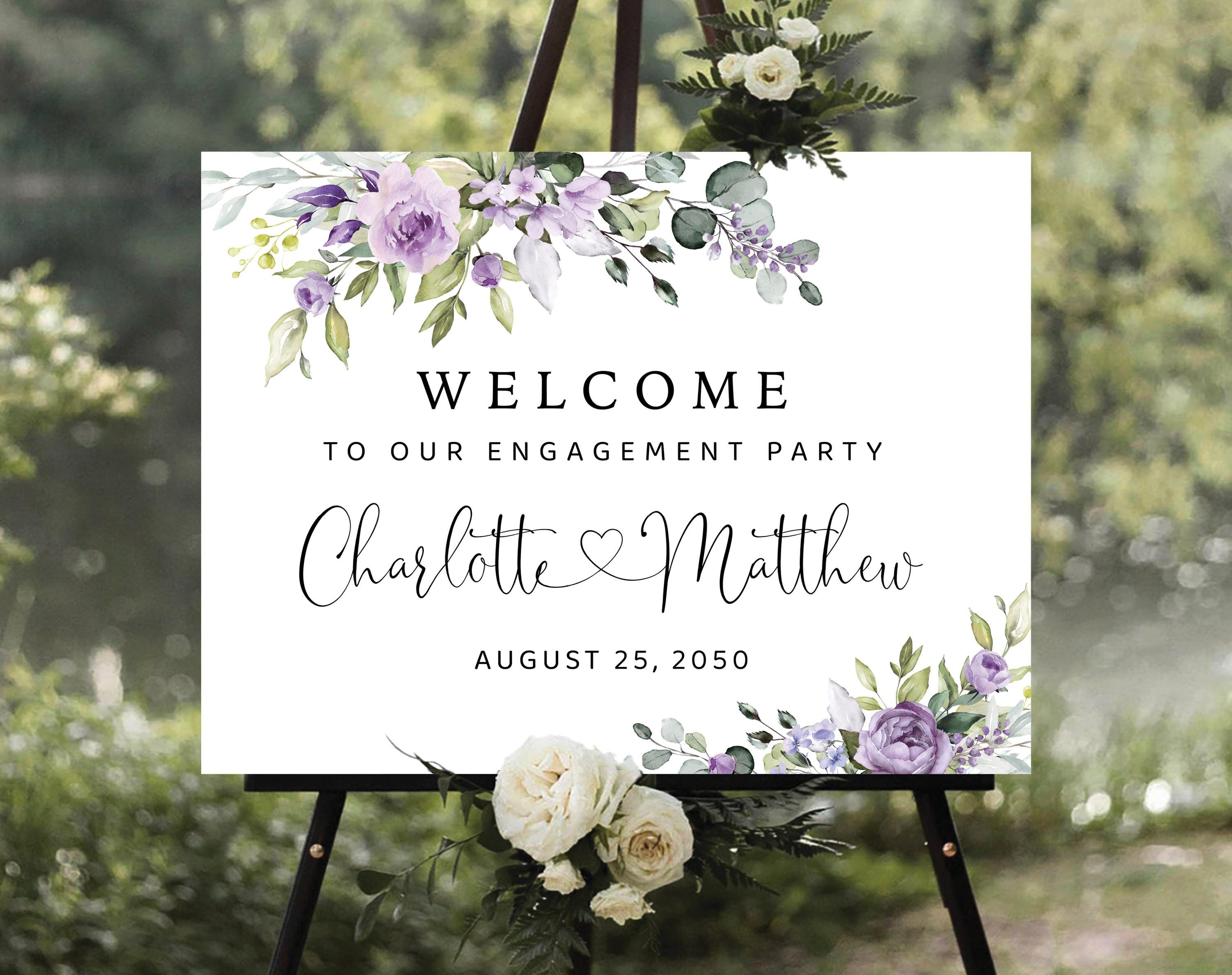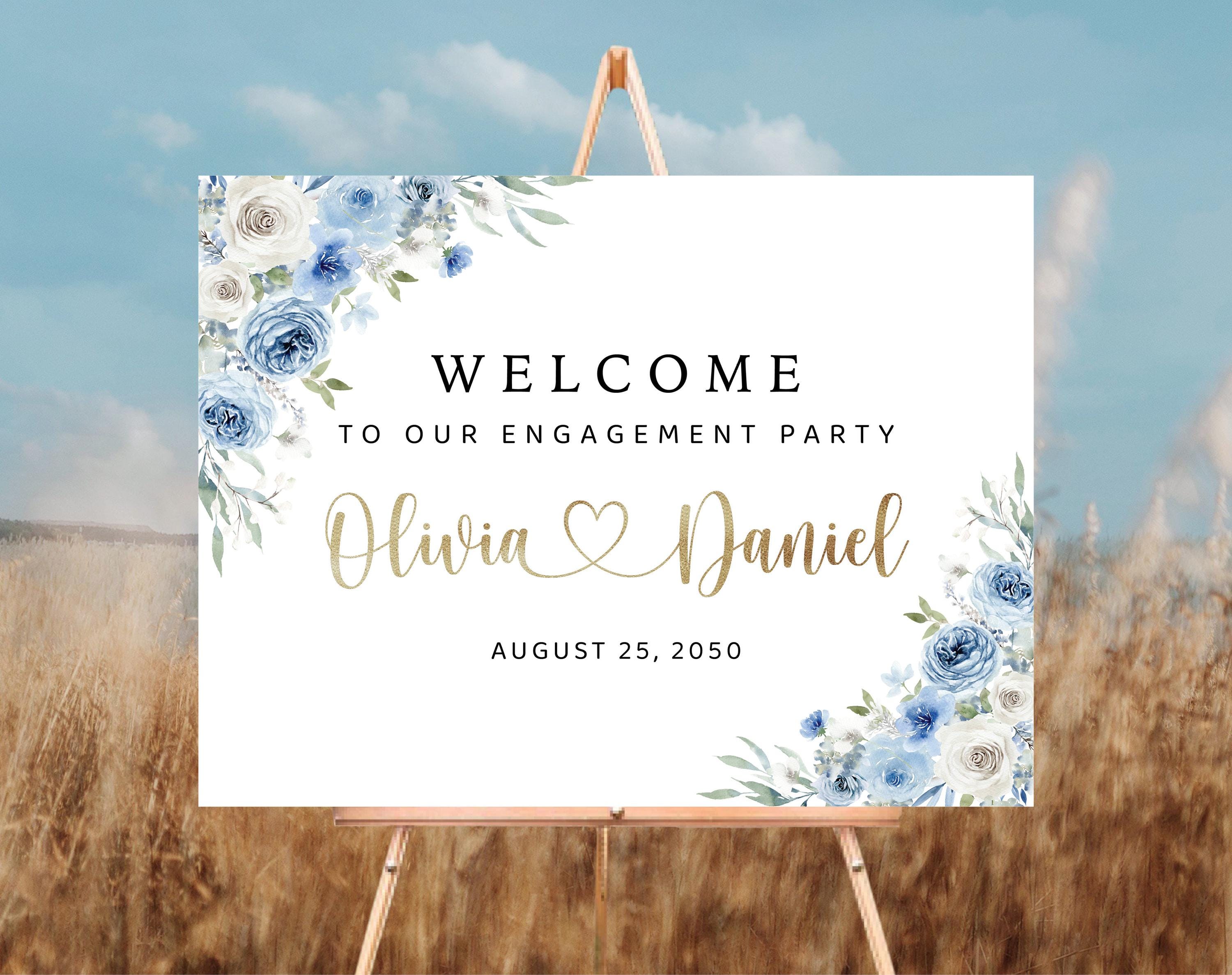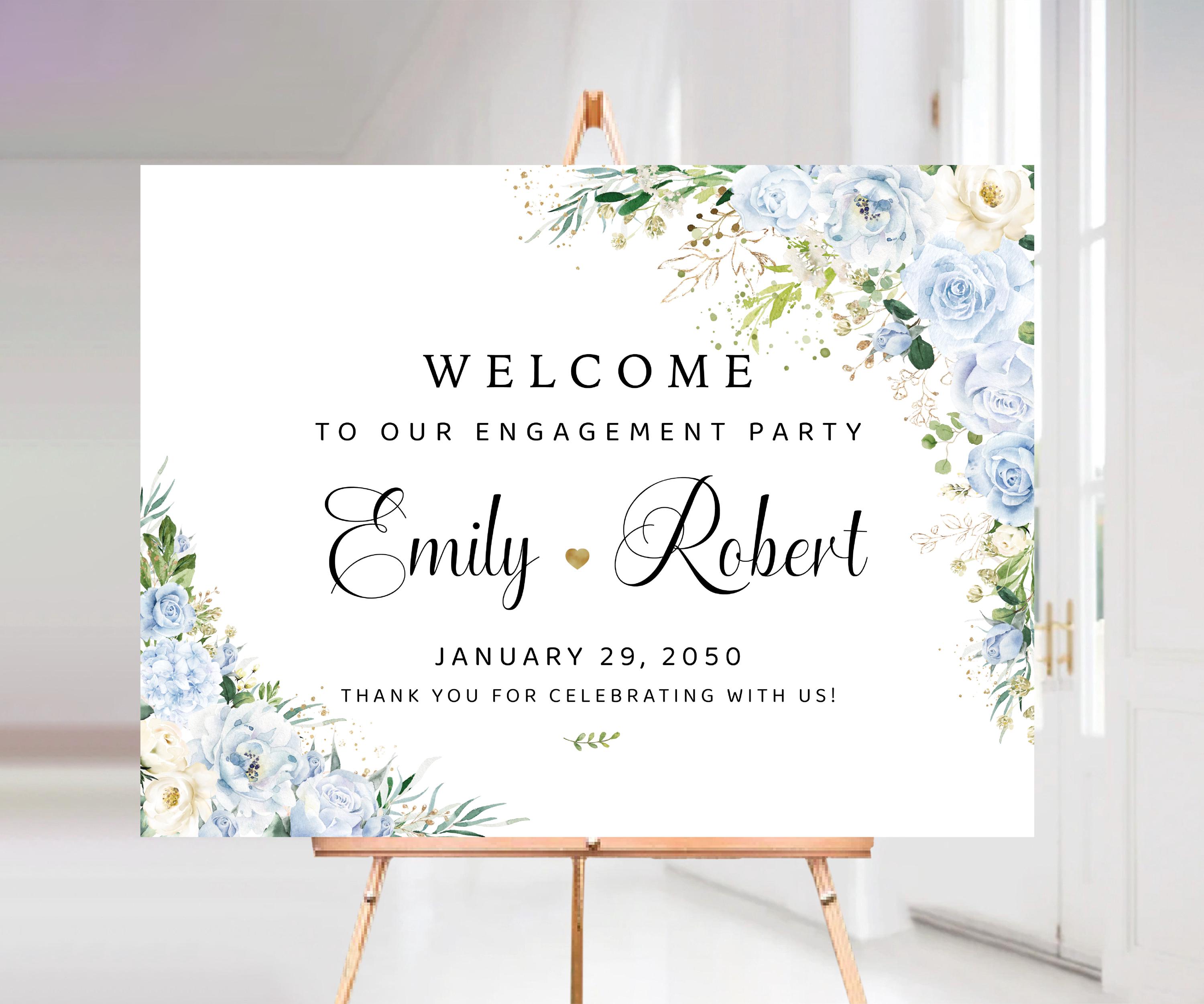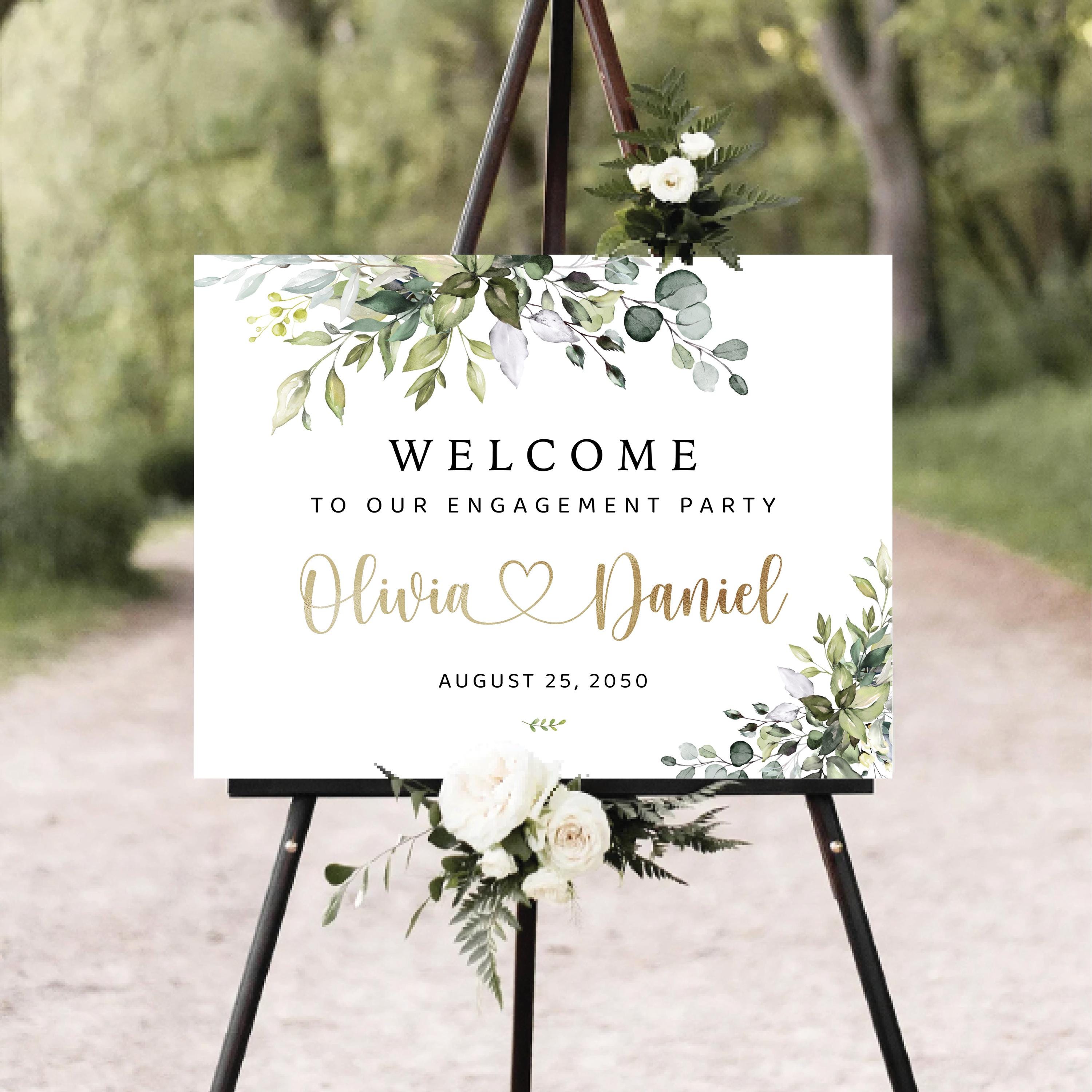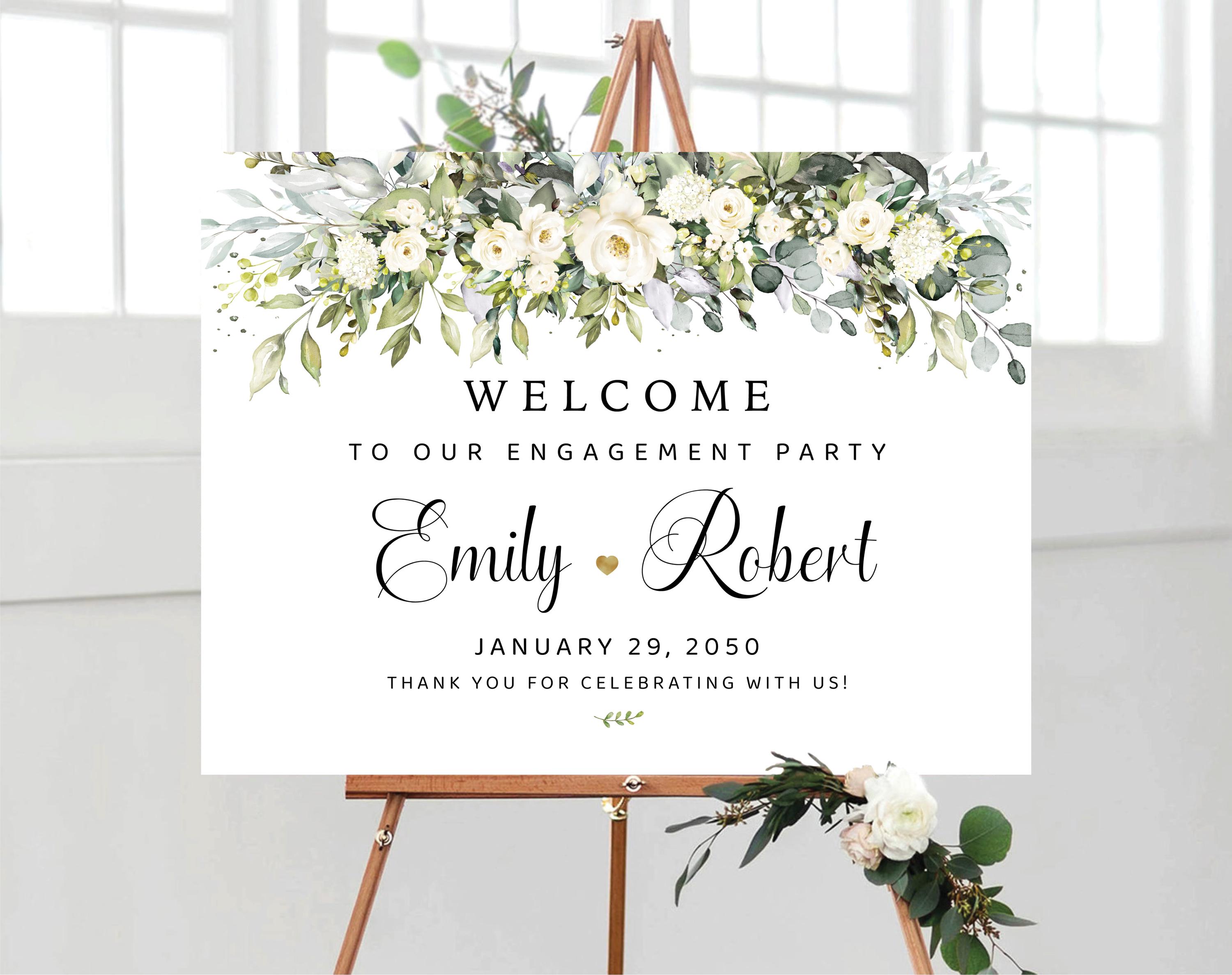 Welcome your guests with timeless elegance using this Floral Engagement Party Welcome Sign. Featuring soft white flowers and lush greenery, paired with delicate handwritten-style fonts, this design brings a natural and romantic charm to your special celebration. Fully personalized with your details, it’s the perfect way to create a warm and stylish first impression.